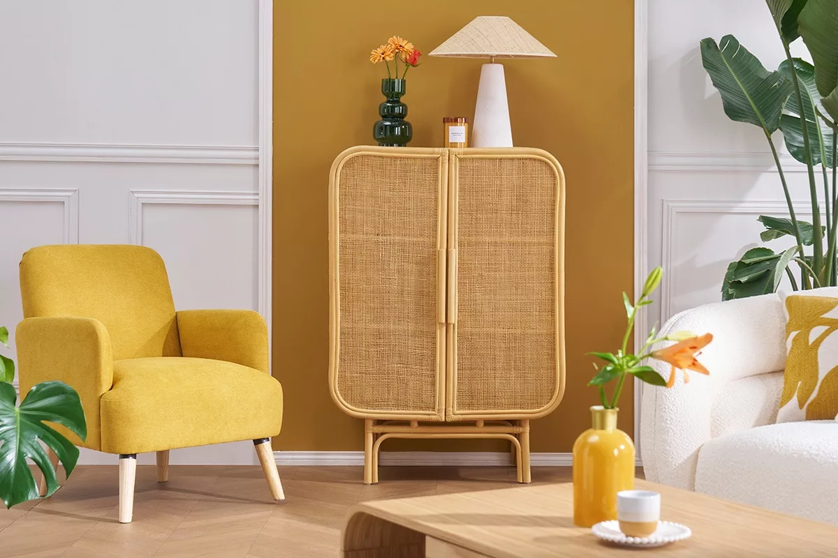 Fabriqué à partir de rotin, ce buffet fait entrer la nature dans votre lieu de vie. Ce matériau léger et résistant, ajoute une touche chaleureuse et authentique tout en évoquant un esprit naturel et apaisant. Sa structure robuste fait du buffet LUWAK un meuble durable, capable de traverser les années sans se démoder. Le cadre aux angles arrondis lui confère une allure douce et harmonieuse, en contraste avec les lignes droites et épurées des meubles traditionnels.