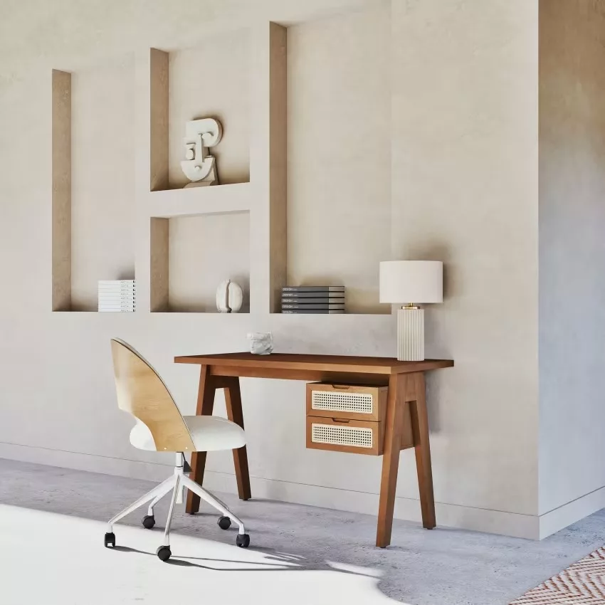 - Le bureau vintage en bois d’acacia massif et cannage rotin SANTA FE est un meuble élégant et fonctionnel qui ajoutera une touche de charme à votre espace de travail.