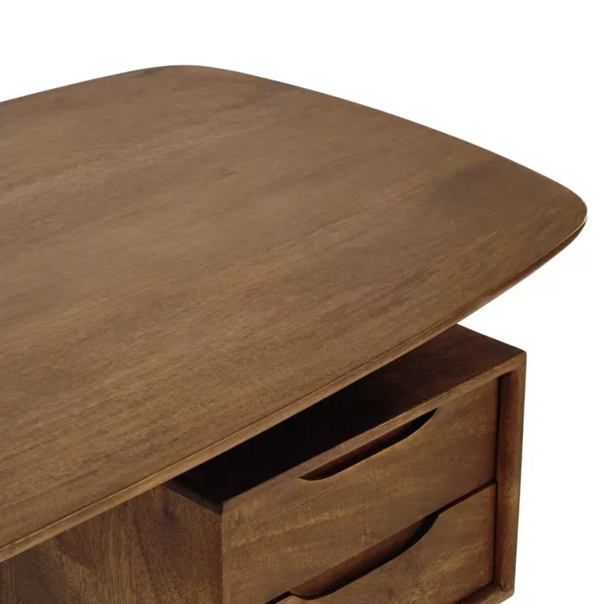 Au niveau des rangements, ce bureau en bois vous offrira un beau plan de travail ainsi que quatre tiroirs pour toutes vos fournitures.