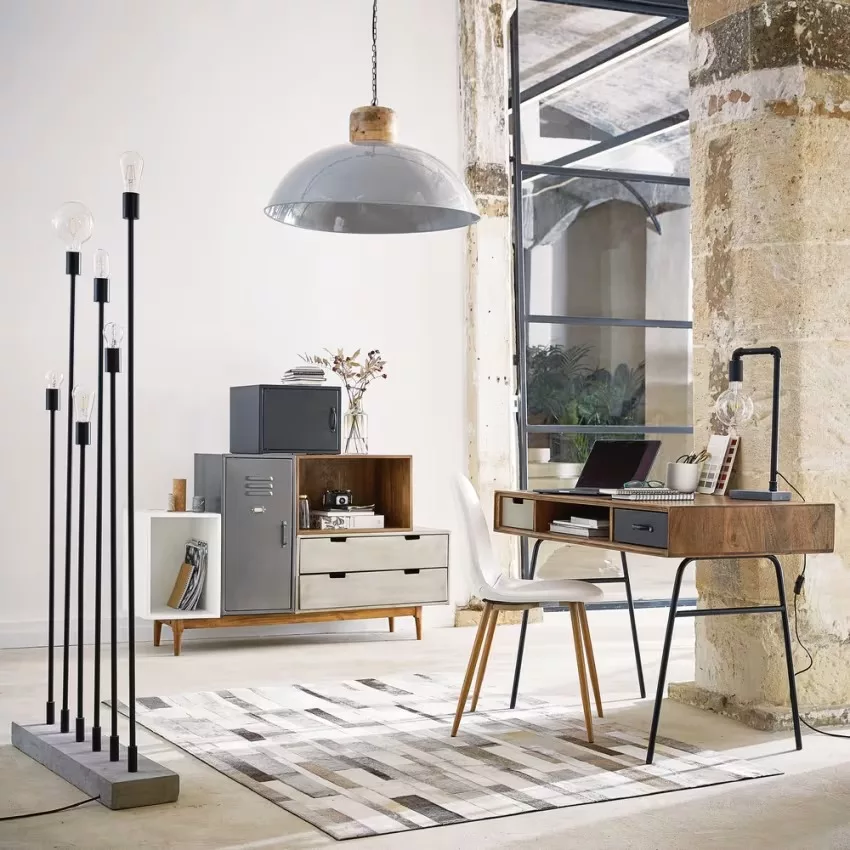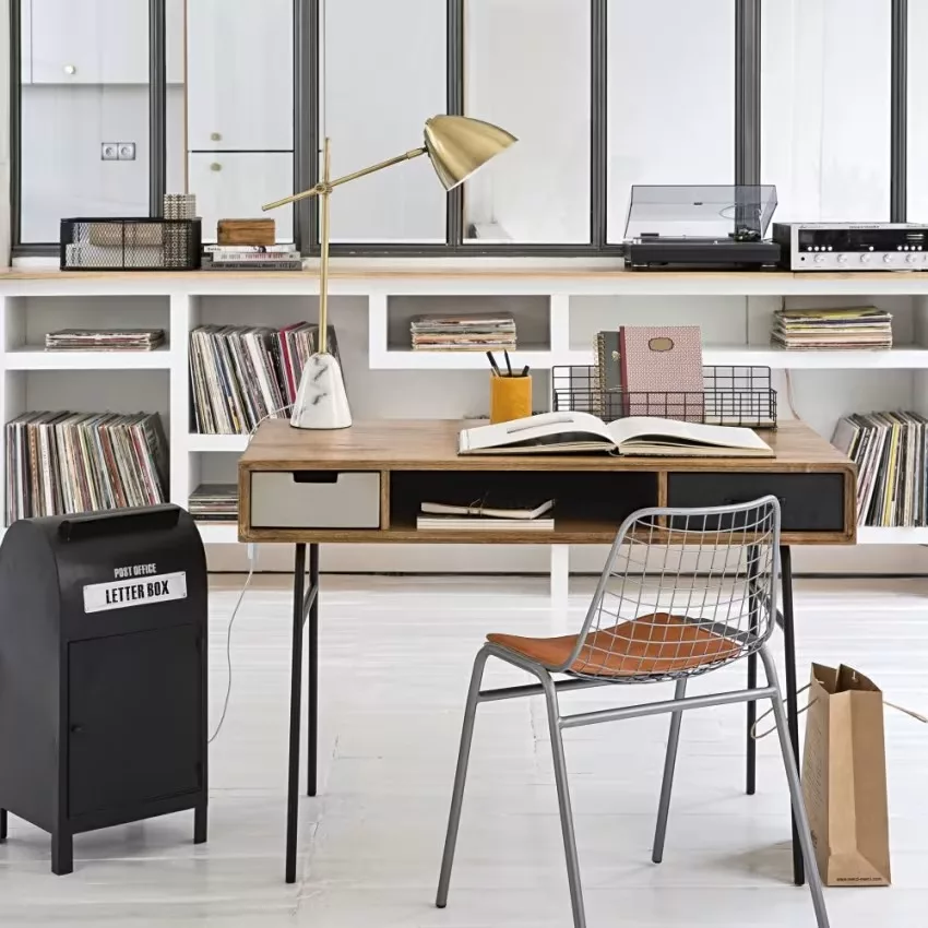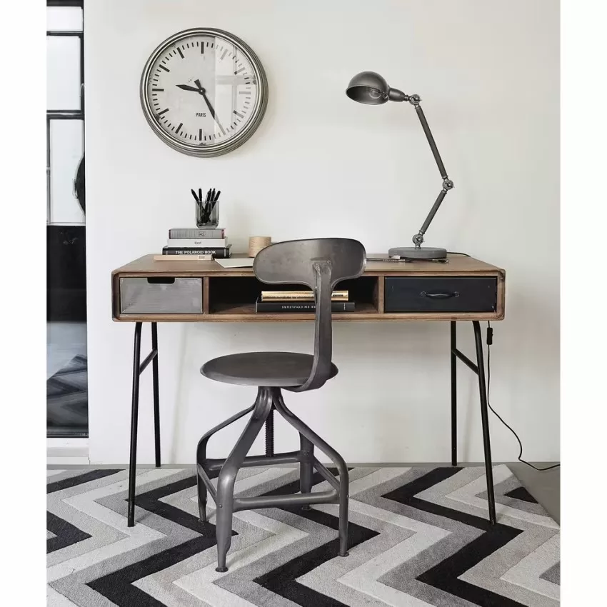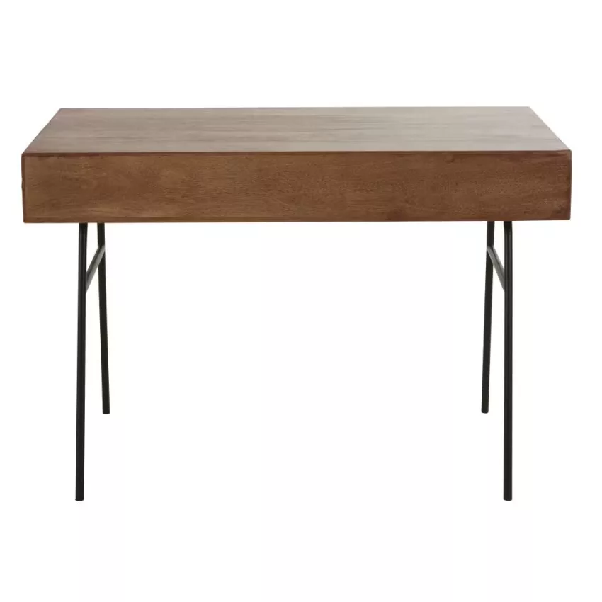 Sobre et épuré, le bureau en bois de manguier massif LENOX vous offrira un beau plan de travail. Monté sur un piètement en métal, ce bureau moderne est complété par 2 tiroirs en métal et une niche centrale pour votre matériel. Le détail déco : les 2 tiroirs en métal aux finitions différentes. Notre conseil : pour travailler dans de bonnes conditions, optez pour une lampe orientable.
