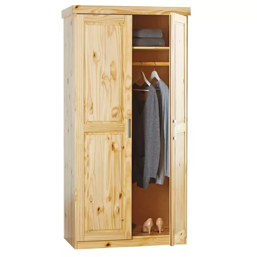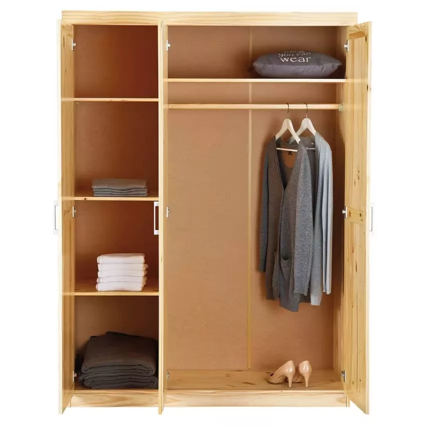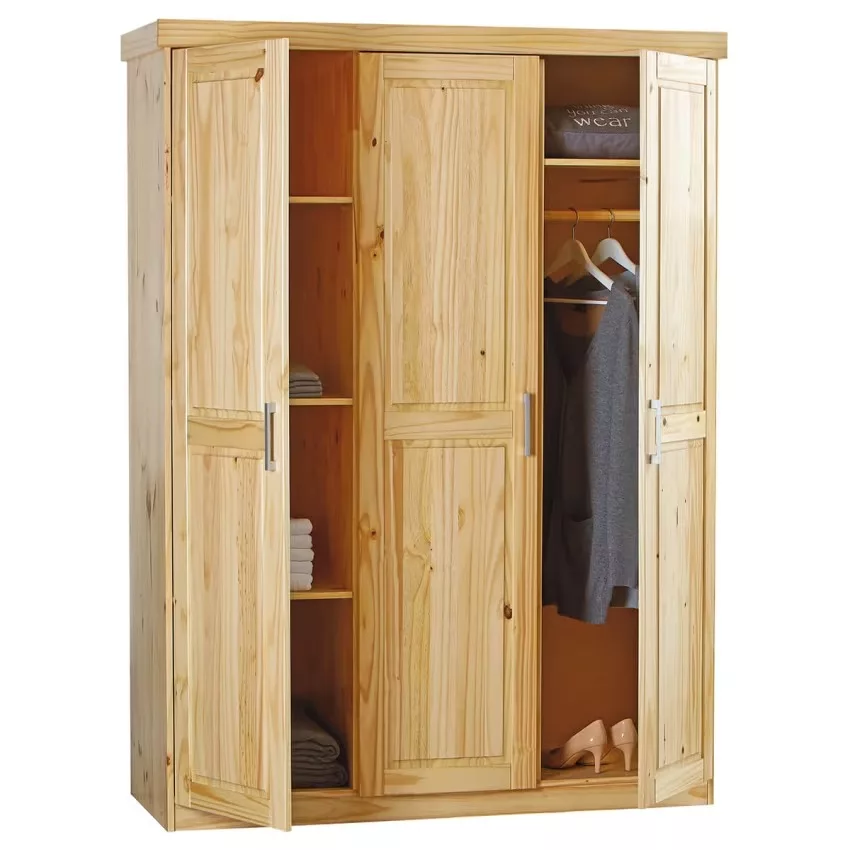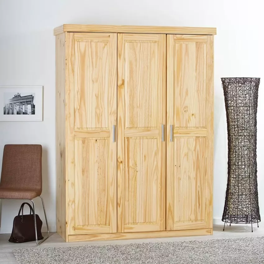Armoire 3 Portes + Penderie Bois Massif Naturel Cali.