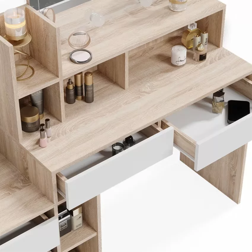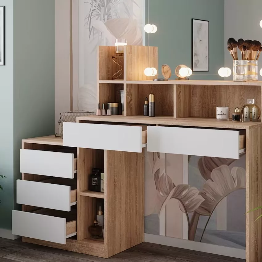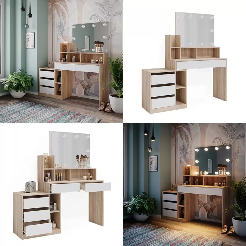 Découvrez notre magnifique coiffeuse Anja pour transformer votre routine beauté en un véritable moment de plaisir et de luxe. Avec son miroir intégré et son éclairage subtil, vous pourrez vous préparer comme une vraie star. Sa conception élégante et sa finition de haute qualité apporteront une touche de glamour à votre chambre. Imaginez-vous en train de vous pomponner devant ce miroir, vous sentant belle et confiante pour affronter la journée. Offrez-vous ce précieux espace de beauté, et laissez-vous envoûter par le charme intemporel de la coiffeuse Anja.