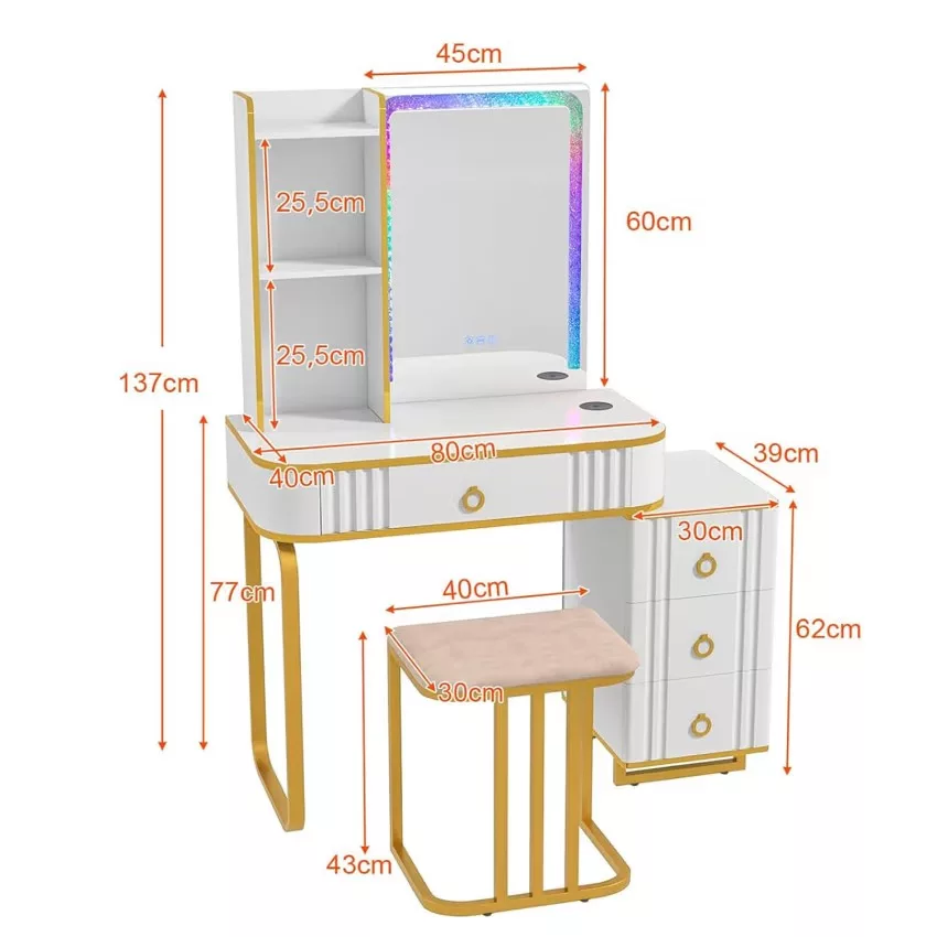 Dimensions de la table : 40 x 80 x 137 cm (L x l x H)