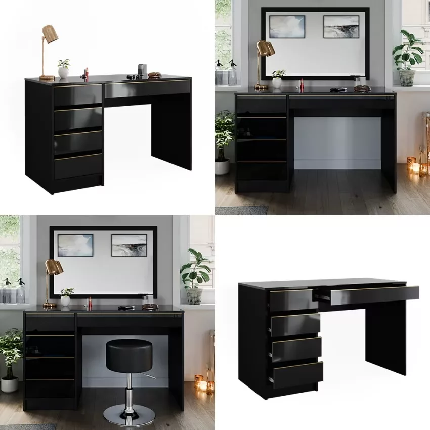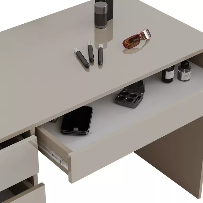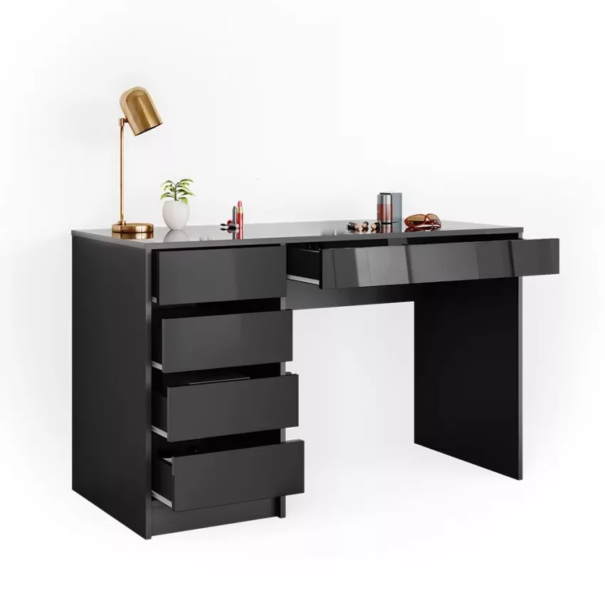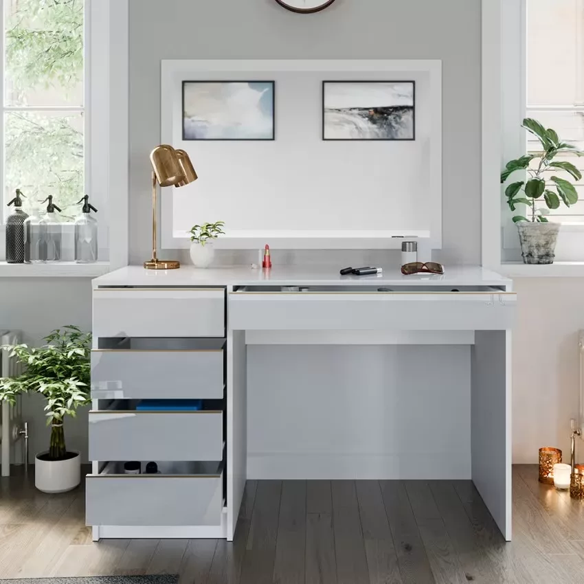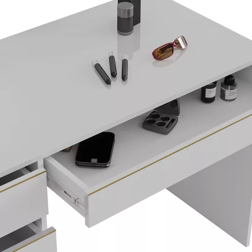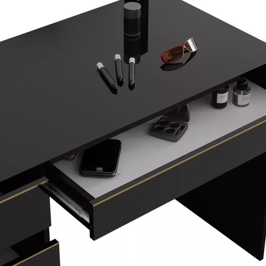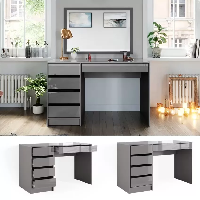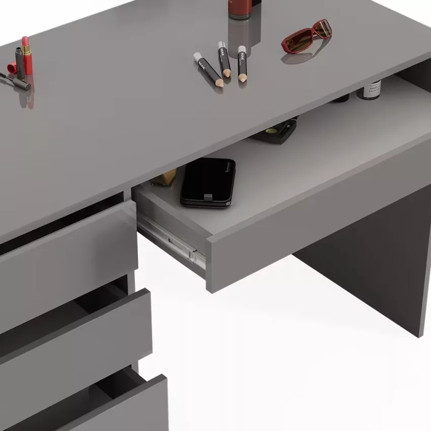 Avec ses cinq tiroirs pratiques, cette coiffeuse offre un espace de rangement généreux pour tous vos produits de beauté et accessoires. Son design intemporel confère à votre chambre à coucher une note élégante qui ne se démodera jamais. Le montage est un jeu d’enfant et se fait en un clin d’œil grâce aux instructions fournies. La surface facile d’entretien vous permet de nettoyer sans effort et de profiter durablement de ce meuble élégant.