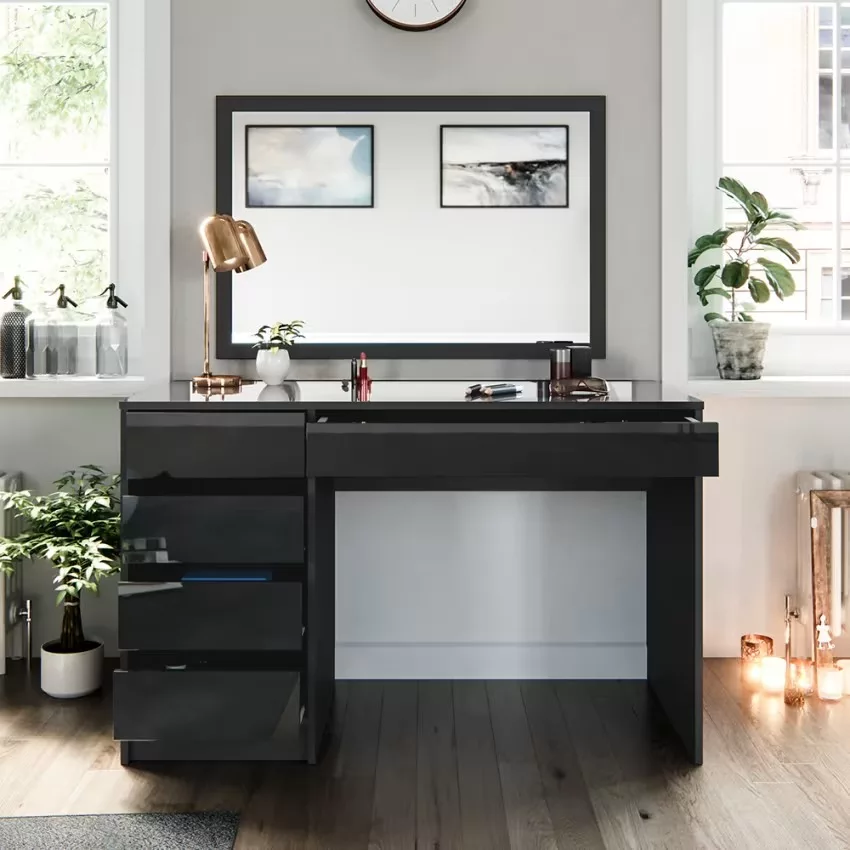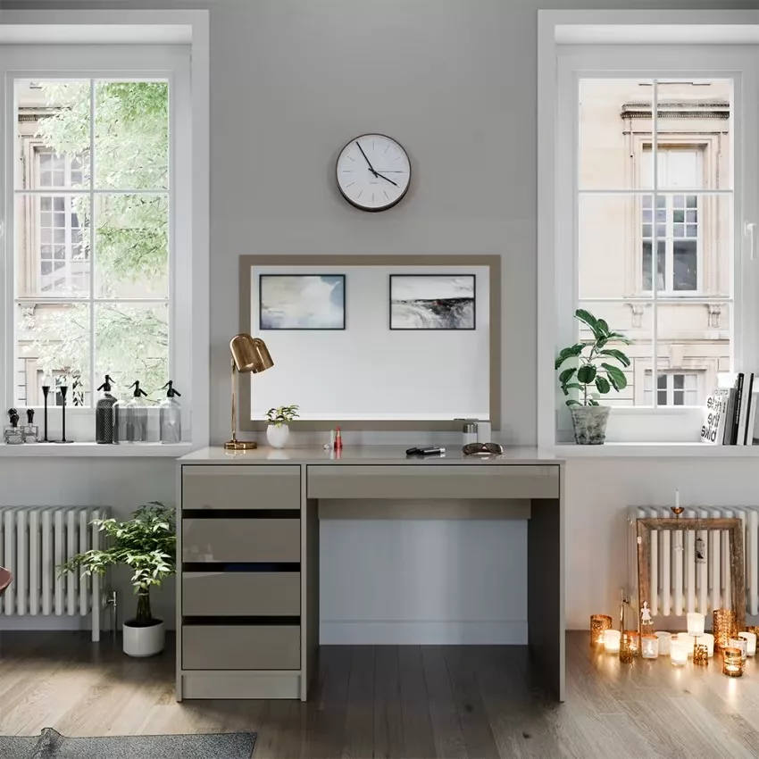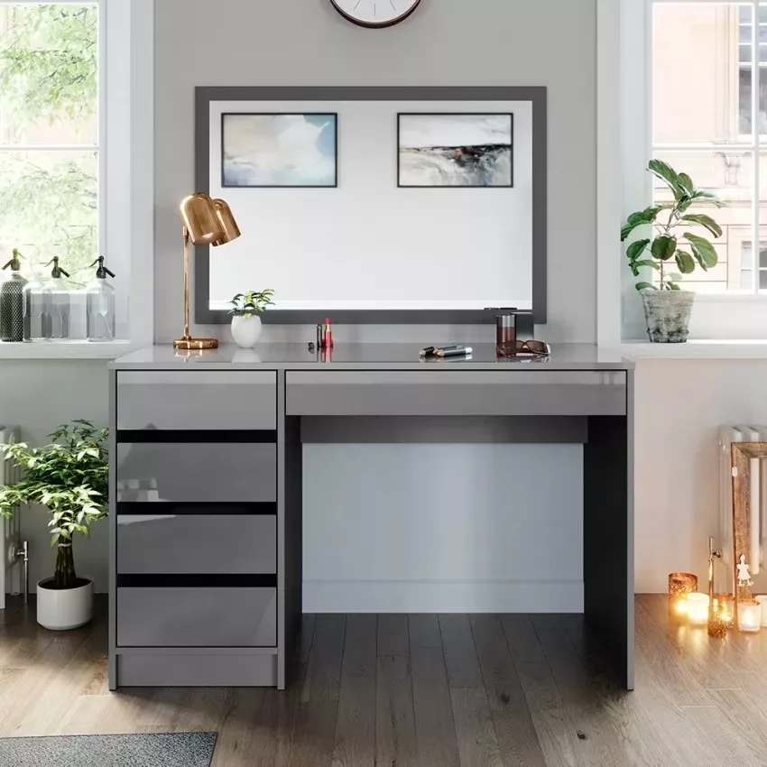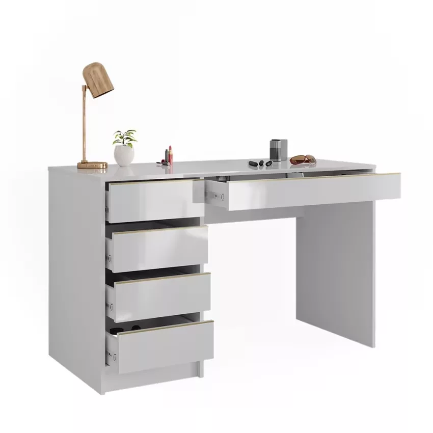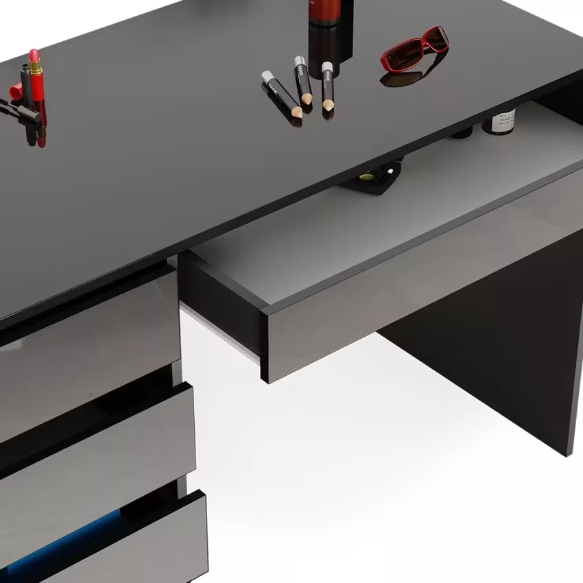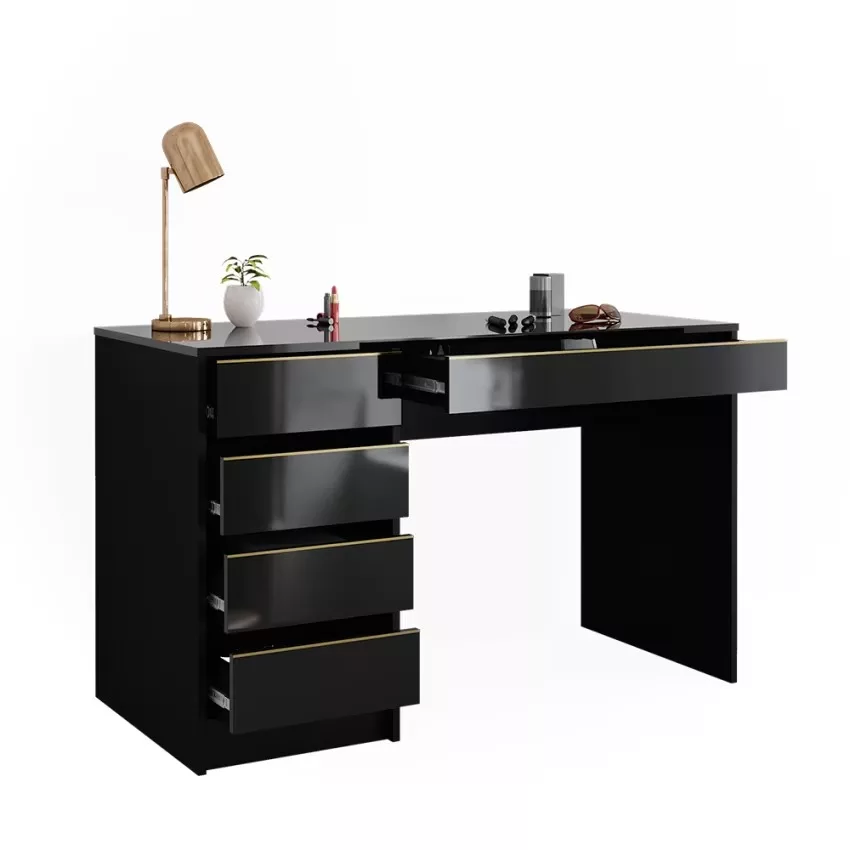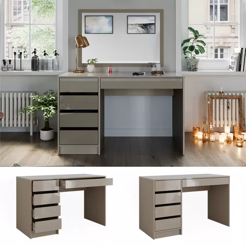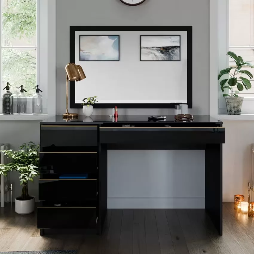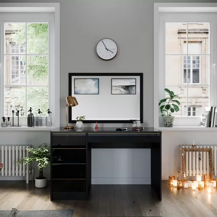 Avec ses cinq tiroirs pratiques, cette coiffeuse offre un espace de rangement généreux pour tous vos produits de beauté et accessoires. Son design intemporel confère à votre chambre à coucher une note élégante qui ne se démodera jamais. Le montage est un jeu d’enfant et se fait en un clin d’œil grâce aux instructions fournies. La surface facile d’entretien vous permet de nettoyer sans effort et de profiter durablement de ce meuble élégant.