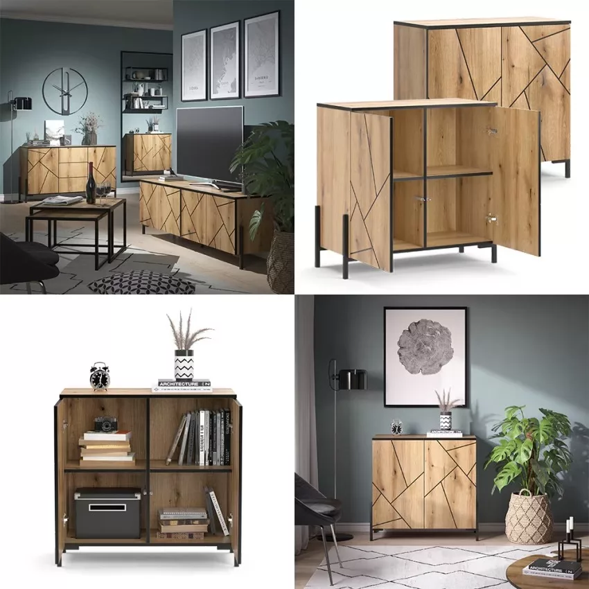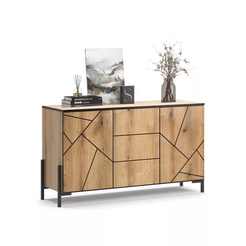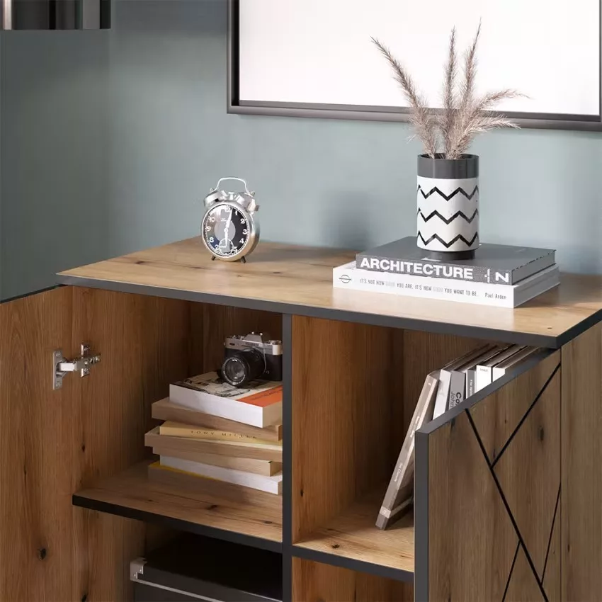 Avec son design moderne, le sideboard sintègre avec style dans votre intérieur. Un véritable accroche-regard ! Avec ses 2 portes, ses 4 compartiments et ses 3 tiroirs, le sideboard offre beaucoup despace de rangement pour vos ustensiles et permet de maintenir lordre. La fonction « Push-to-Open » permet douvrir facilement les portes et les tiroirs sans poignées. La surface facile dentretien fait du nettoyage un jeu denfant et garantit un plaisir durable à votre sideboard. Le sideboard fait partie de notre série de meubles Hatto.
