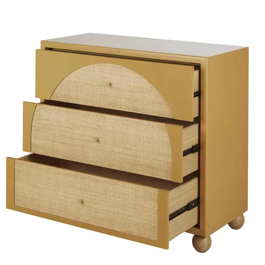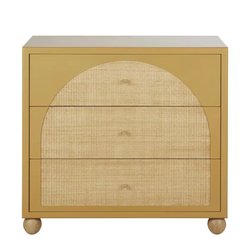 Dabali - Commode haute 3 tiroirs ocre et rotin tressé L98