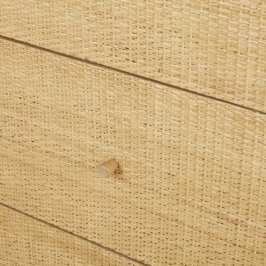 Tiroirs : rotin tressé, intérieur en panneaux de fibres de moyenne densité (E1) avec placage chêne