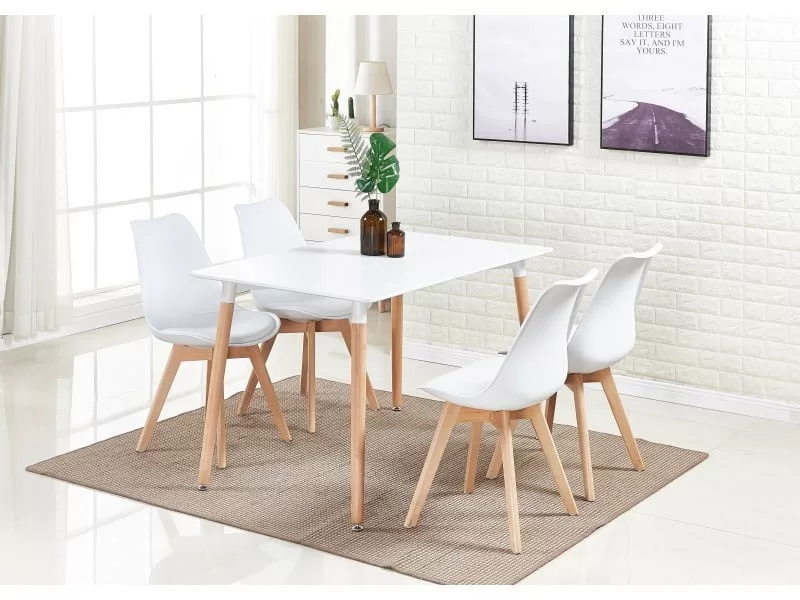 Ensemble salle à manger moderne lorenzo – table blanche + 4 chaises blanches – design scandinave