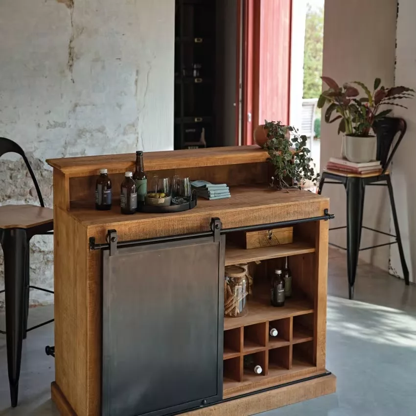 Dans votre maison du campagne, optez pour le bar 1 porte en bois de manguier massif et métal noir GERMAIN