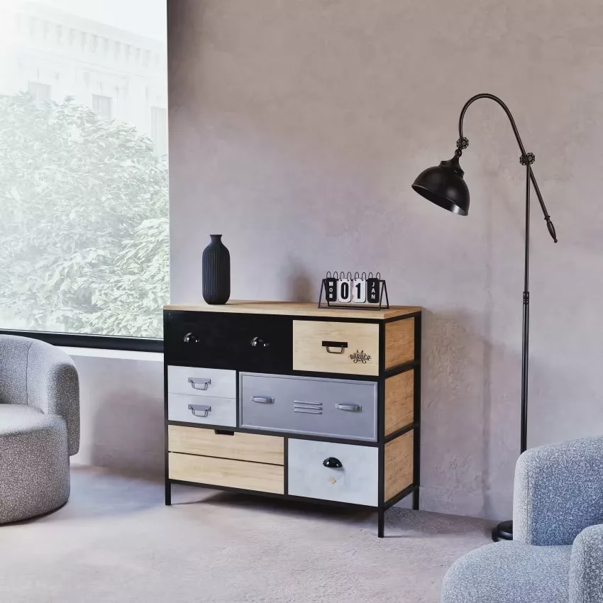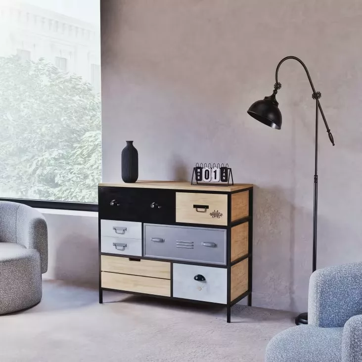 Laissez-vous séduire par la commode 8 tiroirs en métal et sapin HARVEY.