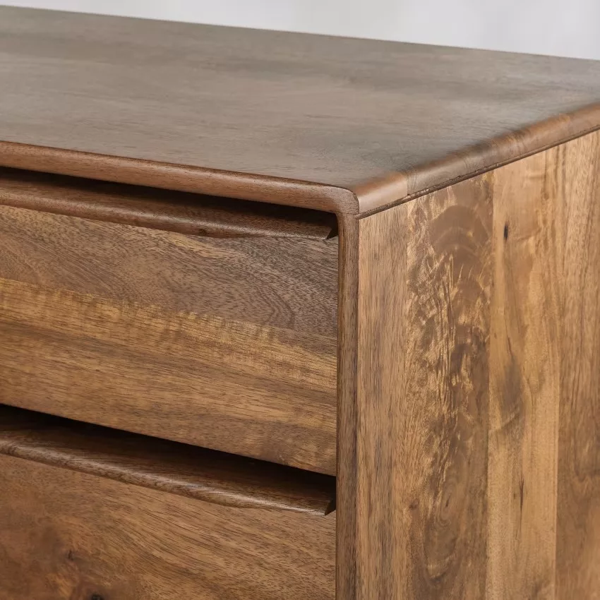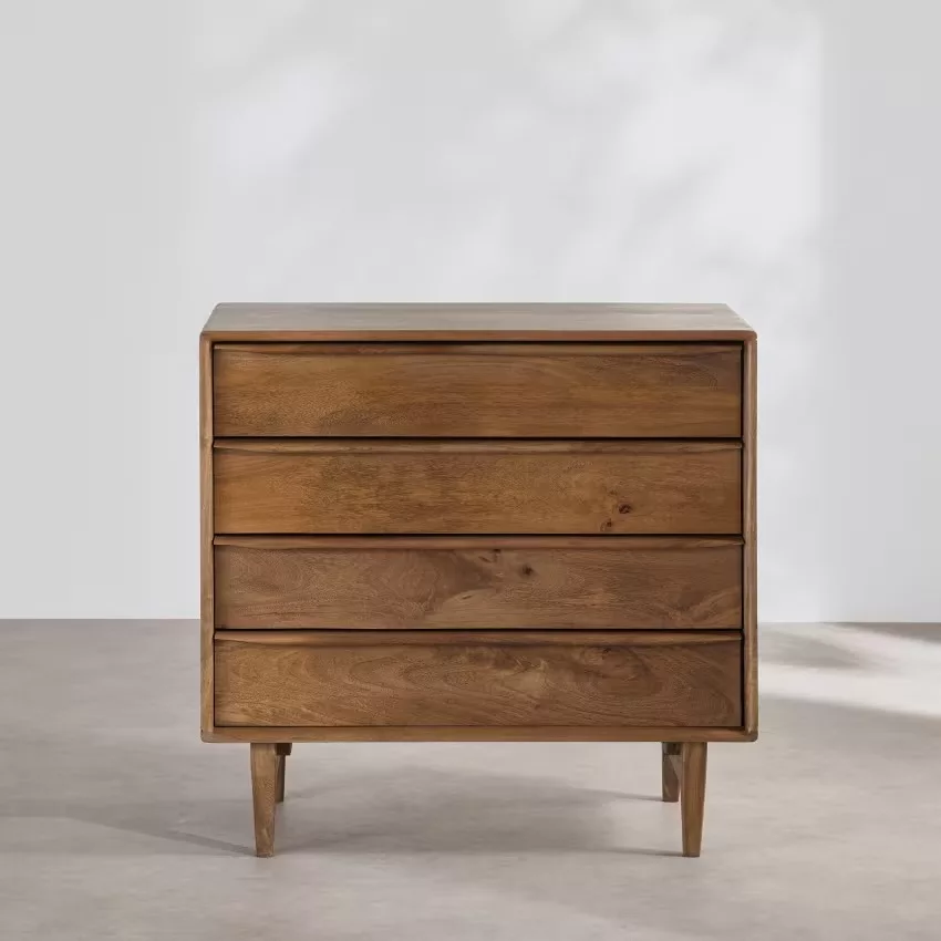 La commode vintage en manguier JANEIRO créera une ambiance chaleureuse dans votre pièce. Avec ses pieds obliques au look rétro, cette commode en bois vous offrira les rangements nécessaires avec 4 grands tiroirs. Le must ? Le dégradé de couleurs qui anime les tiroirs. Notre conseil : décorez son plateau avec une jolie plante verte ou une belle lampe du même style. Qu’en dites-vous ?