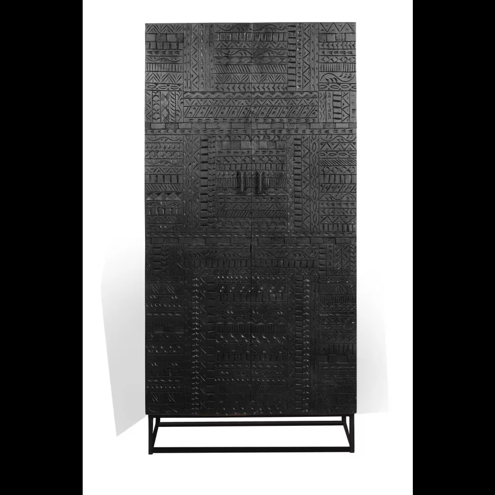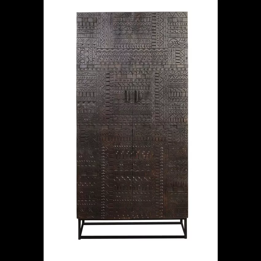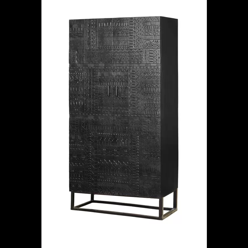 Armoire en bois de manguier et base en fer. taille de la porte : 166×45. hauteur des étagères intérieures : 30cm. hauteur de la barre de suspension : 90 cm. hauteur des pieds : 16cm. Poids : 77 kg. Étant donné qu’il s’agit d’un meuble en bois naturel et fabriqué à la main, il peut conserver ses nœuds et ses veines d’origine et peut donc présenter des différences en ce qui concerne la couleur.