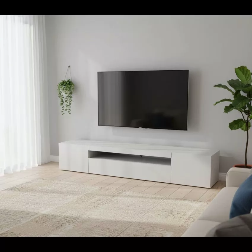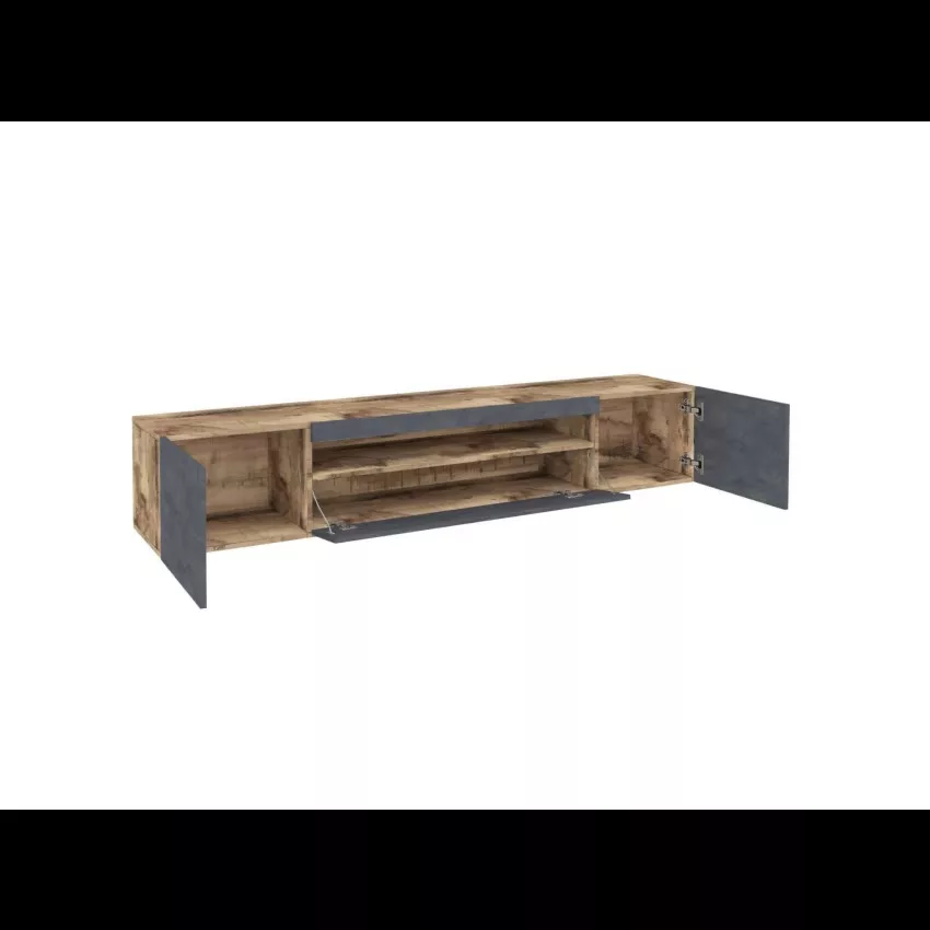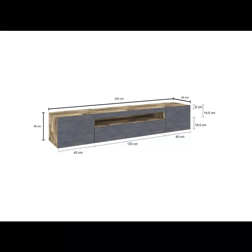 MEUBLE TV – Buffet bas de salon avec 3 portes, base meuble TV, 100% Made in Italy, 200x40h37 cm, Érable et Ardoise. STRUCTURE ET UTILISATION – Meuble TV minimaliste, structuré avec deux portes battantes et une porte pliante avec un compartiment ouvert – Les compartiments internes sont parfaits pour placer tout ce dont vous avez besoin ainsi que le compartiment ouvert – Les portes ont des charnières métalliques solides et durables – La structure est entièrement de couleur érable avec un détail couleur ardoise sur le devant des portes – L’étagère supérieure est parfaite pour ranger votre téléviseur ou vos décorations préférées. MADE IN ITALY – L’article est produit en Italie, avec l’utilisation des meilleurs matériaux, la plus haute qualité et le souci du détail – Le soin apporté aux processus de production est synonyme de fiabilité, de résistance et de raffinement – La certification Made in Italy est une garantie conformité totale avec la réglementation de l’Union européenne. CARACTÉRISTIQUES TECHNIQUES ET ASSEMBLAGE – Article d’ameublement entièrement réalisé en panneaux de bois lamellé mélaminé certifiés FSC – Il est résistant aux chocs et aux rayures, est durable dans le temps et imperméable – Nettoyage rapide et facile grâce au matériau avec lequel il est fabriqué – Accessoire d’ameublement livré démonté avec kit et livret d’instructions de montage – Soin et attention particulière apportés à l’emballage, résistant et adapté au transport – Certification ISO 9001 pour la conception et la fabrication de meubles en kit. DIMENSIONS EN CM – Meuble TV: Longueur: 200 Largeur: 40 Hauteur: 37.