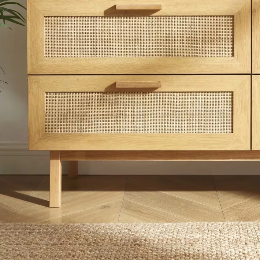 Cette commode signée Drawer et confectionnée en MDF et mélaminé avec pieds et poignées en bois massif d’hévéa affiche un style bohème, et les façades en cannage font assurément tout le charme du modèle. Vous aimez ?