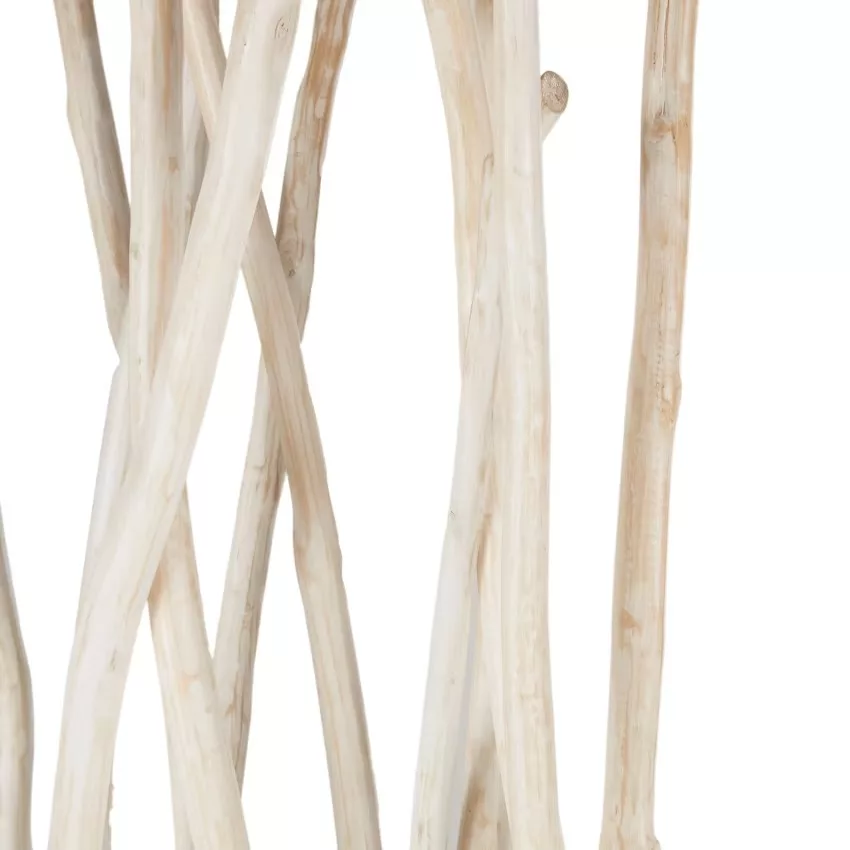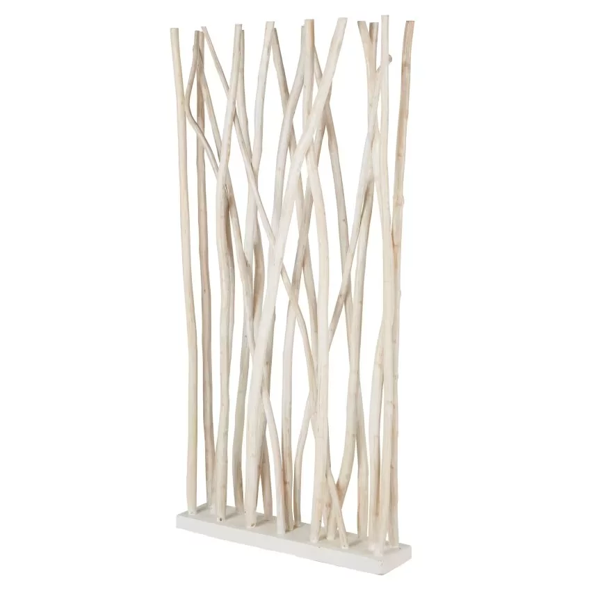 Ce paravent en bois est formé de branches de teck effet blanchi.