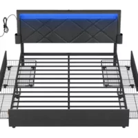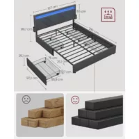 Description des matériaux :-Le cadre du lit est revêtu d’une matière synthétique de coloris noir, gris ou blanc. – Les pieds du lit sont en plastique de coloris noir. Caractéristiques du produit :- Hauteur des pieds : 10 cm – Hauteur du sommier : 27 cm – Epaisseur tête de lit : 9 cm Livraison et montage :- Contenu de la livraison : lit, sommier, pieds, tête de lit, notice de montage – Le produit est livré en pièces détachées – Assemblage facile grâce à la notice – Livré avec matelas.