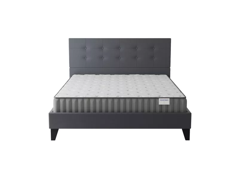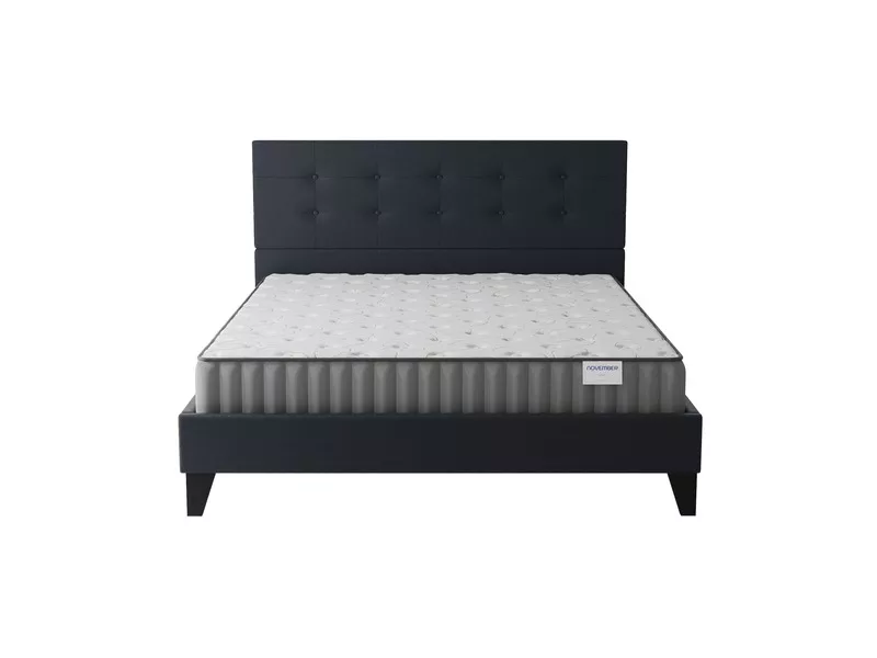 Notre marque française November Sleep vous propose l’ensemble matelas Orionis et notre lit avec tête de lit capitonnée en similicuir