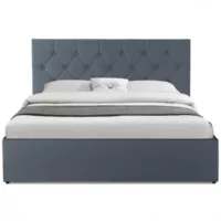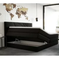 Notre lit vous apportera à coup sûr une touche de modernité dans votre chambre à coucher. Sa tête de lit rembourrée et boutonnée apportera un effet cosy à votre chambre. Le design élégant de ce lit est également marqué par son revêtement en synthétique. La stabilité du lit est assurée par 4 pieds robustes et renforcée par la présence d’une traverse centrale et de 4 pieds de soutien supplémentaire sous le sommier à lattes, ce dernier est inclus dans la livraison.