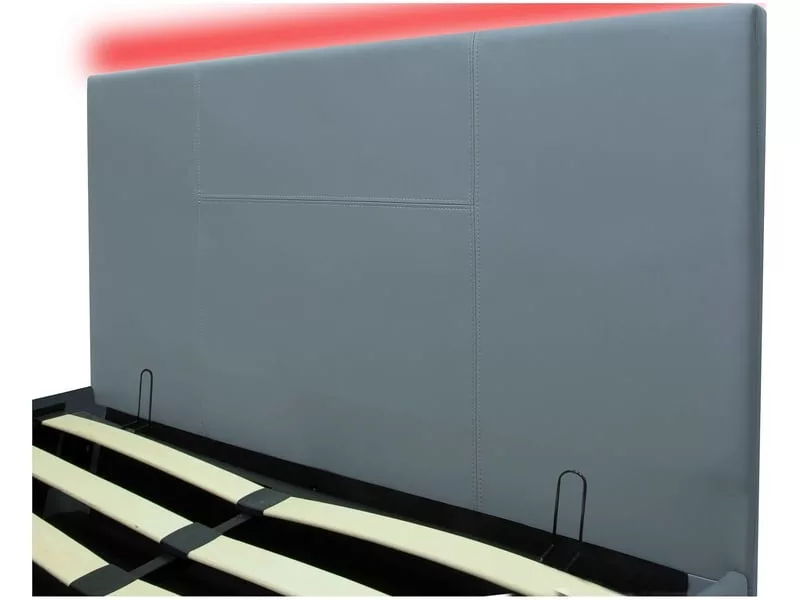 Ce lit coffre est conçu pour allier style et fonctionnalité. Il est doté d’un sommier intégré de 30 lattes, offrant un soutien optimal pour vos nuits. La bande LED intégrée crée une ambiance lumineuse apaisante, idéale pour la lecture ou la détente. Le revêtement en polyuréthane est non seulement esthétique mais aussi facile d’entretien, garantissant une durabilité accrue. Fabriqué avec un cadre métallique robuste et des panneaux de particules de moyenne densité, ce lit assure une solidité à toute épreuve.