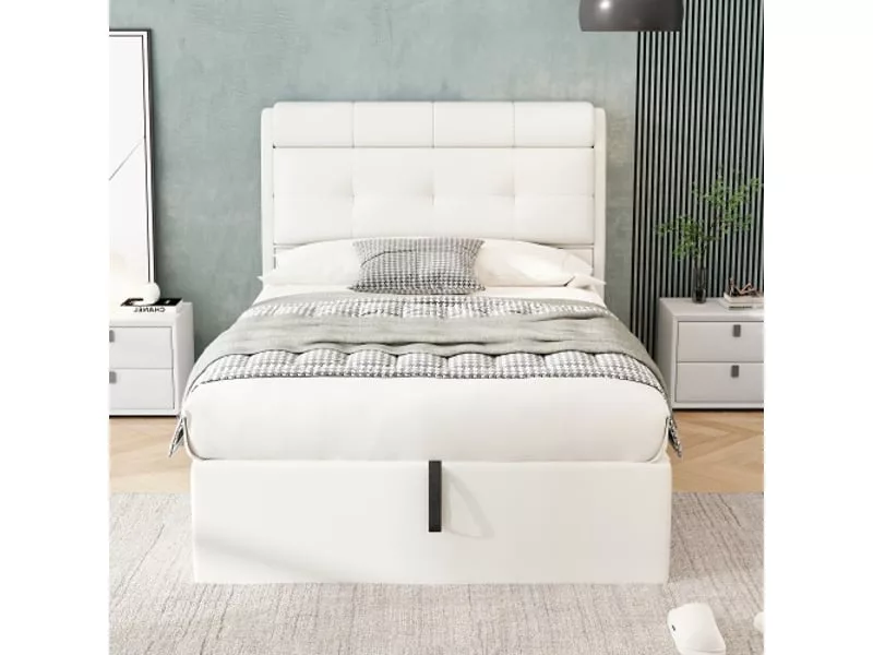 Lit coffre rembourré 160×200 cm coloris blanc pu