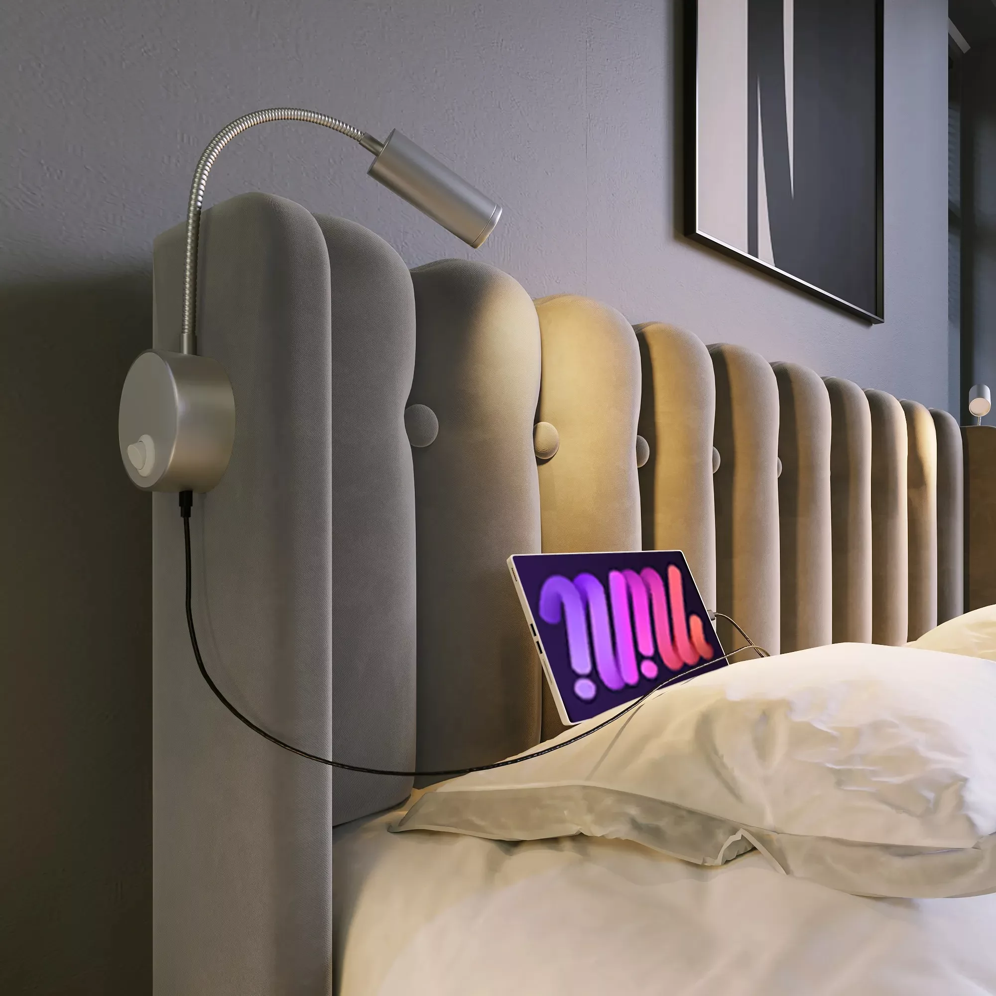 La liseuse de chevet est parfaitement positionnée pour apporter une lumière agréable sans déranger votre partenaire. L’alignement flexible vous permet de diriger la lumière exactement là où vous en avez besoin afin que vous puissiez lire en toute tranquillité.