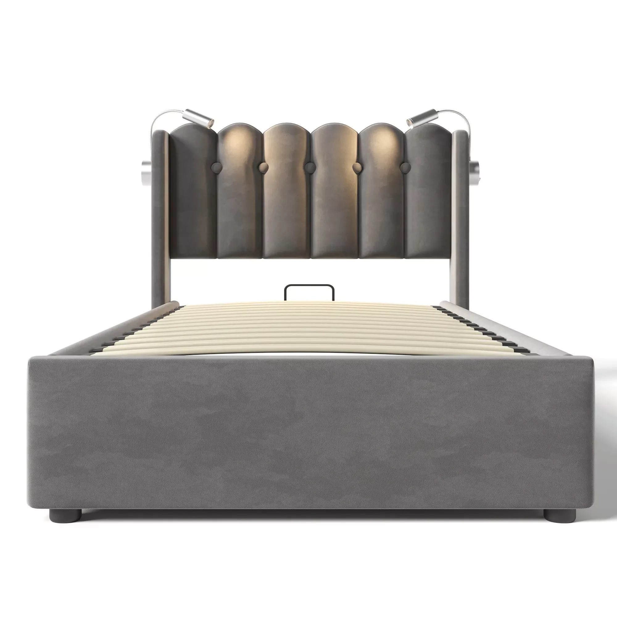 Lit coffre 90×200 cm lit simple 1 personne rembourré, avec liseuse et tête de lit rechargeable, gris (matelas non inclus)