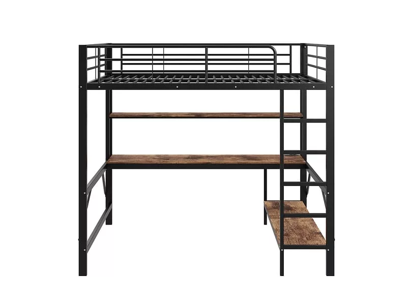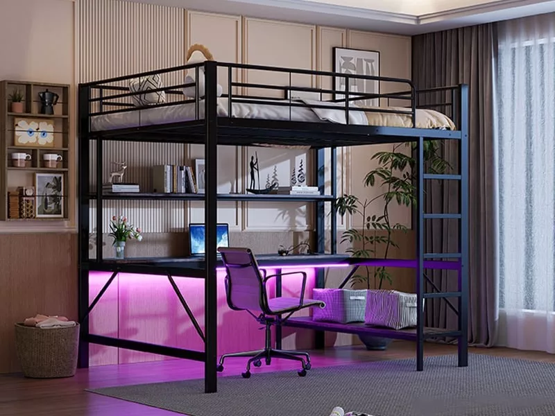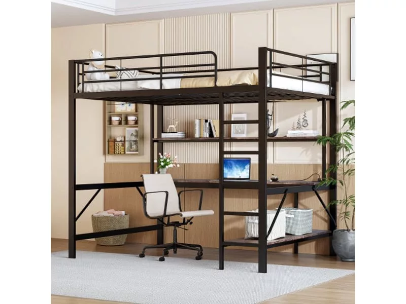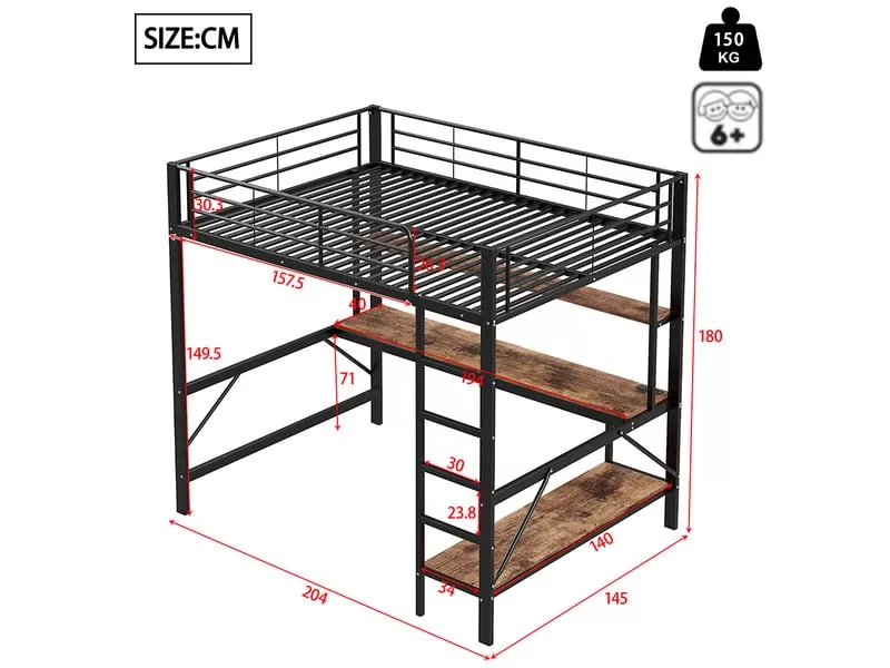 Ce lit est équipé d’une étagère et d’un bureau à plusieurs niveaux, pratiques pour ranger livres, fournitures scolaires et autres articles, tout en offrant un espace de travail spacieux pour apprendre confortablement.