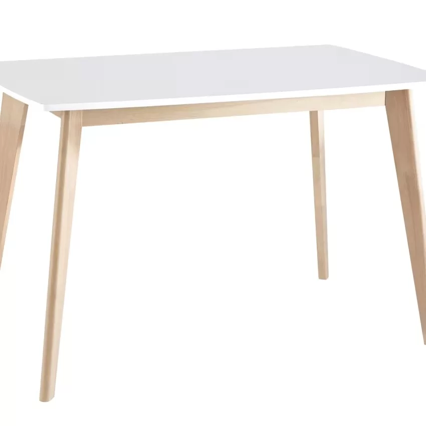 Avec son plateau en bois blanc, la table à manger L120 MIA créera une ambiance douce et lumineuse dans votre pièce de vie. De design moderne, cette table à manger 4/6 personnes conviendra pour les petits espaces. Le détail déco : ses pieds élancés en bois clair. Notre conseil : créez une ambiance graphique avec des chaises de couleur noire. Et pourquoi pas la chaise noire ICE ?