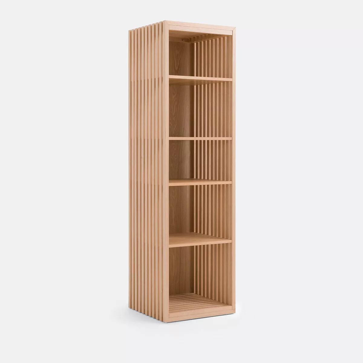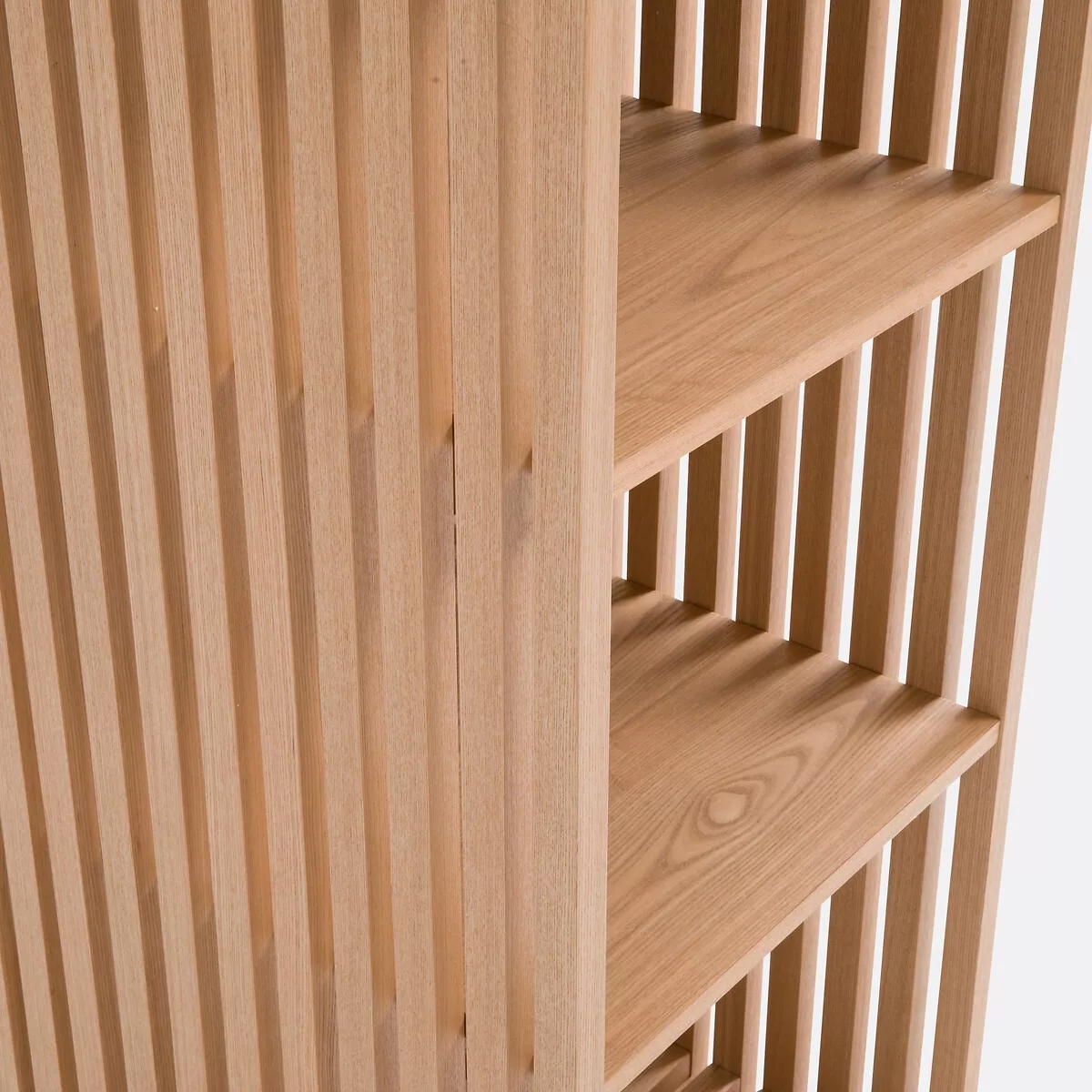 • Lattes latérales ajourées en MDF plaqué frêne, dim. 2,5 x 3 cm