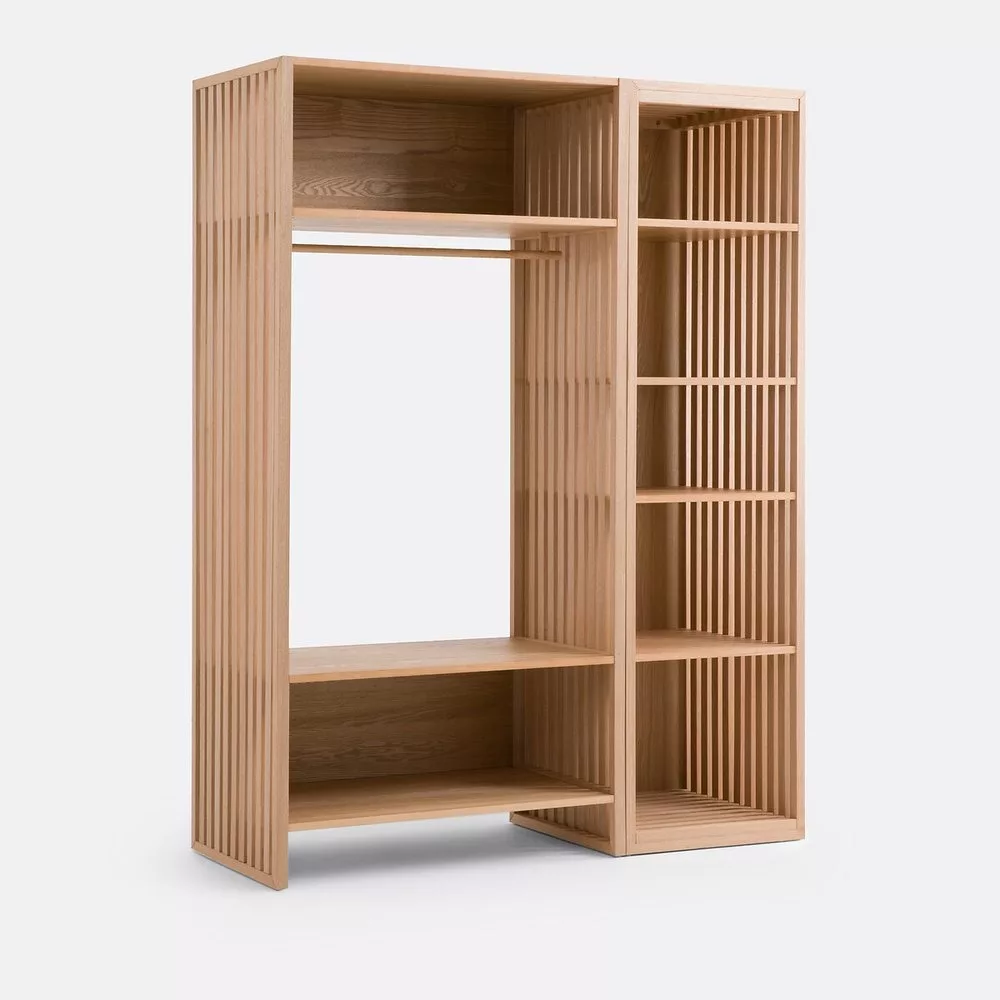 Sa paroi à lattes ajourées réversible de droite à gauche au montage s’adaptera à tout agencement de pièce.