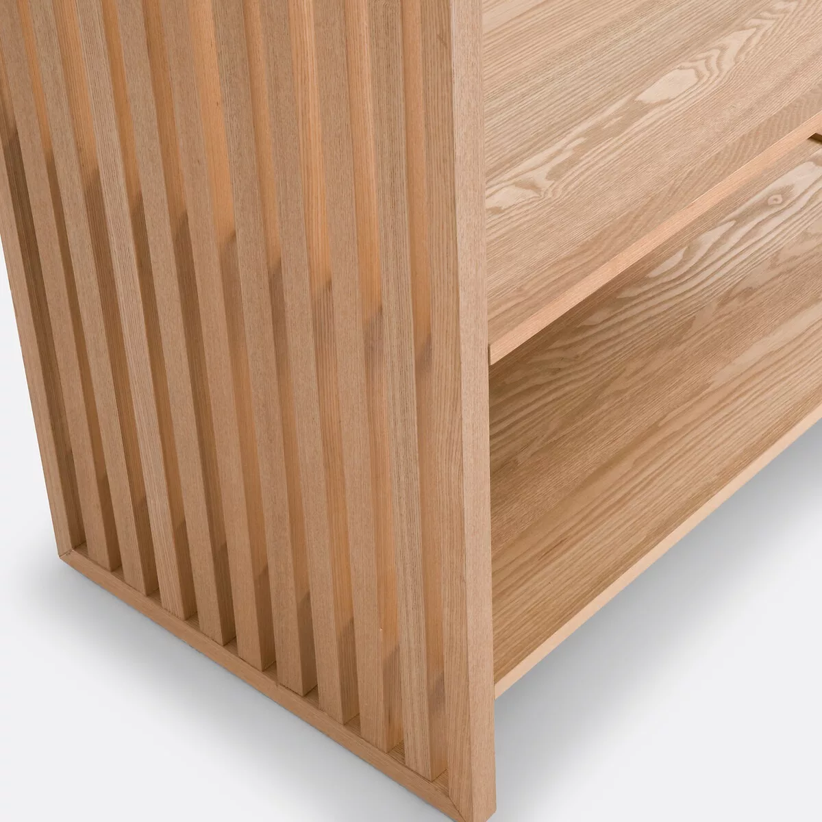• Lattes latérales ajourées en MDF plaqué frêne, dim. L2,5 x P3,5 cm
