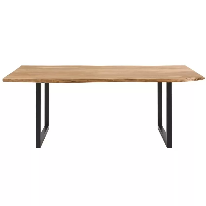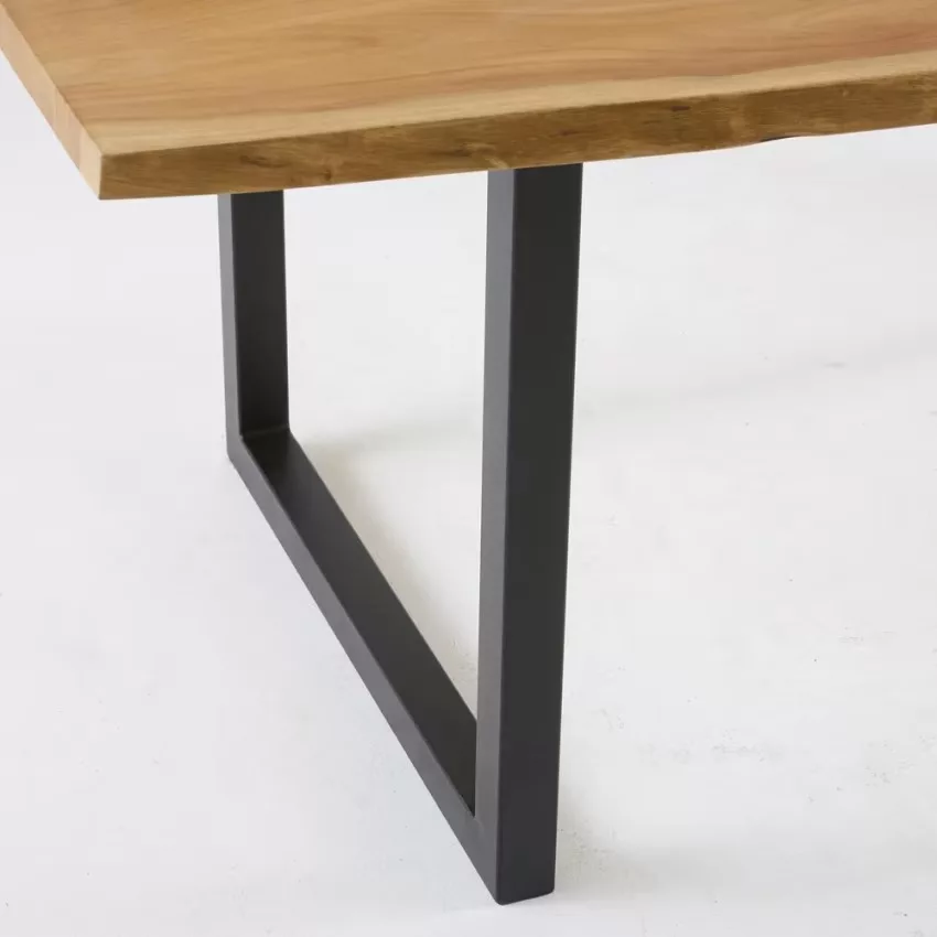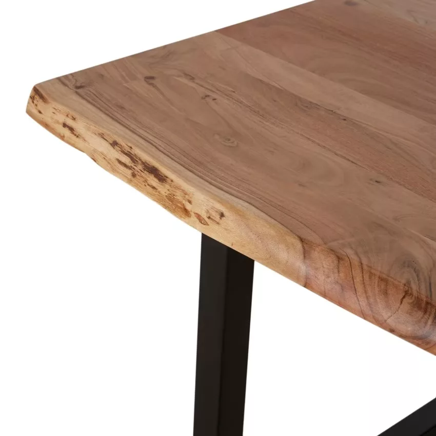 Table à manger industrielle en bois d’acacia et métal noir 8/10 personnes L200