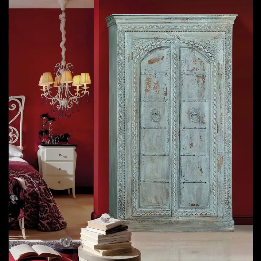 Armoire en bois de manguier massif, avec 2 portes et 3 étagères intérieures. Sculptures de porte faites à la main par des artisans spécialisés. Finition bleu sarcelle et craquelée qui accentue son image de pièce antique. Dimensions : 204 cm de haut X 117 cm de large X 45 cm de profondeur. Poids : 95 kg. Mesures d’emballage : 210 x 123 x 45 cm. TRÈS IMPORTANT! PRODUIT ASSEMBLÉ! Avant de procéder à l’achat, nous vous recommandons fortement de vérifier les dimensions des entrées de votre maison ou de votre chambre, ainsi que l’espace disponible dans la cage d’escalier et la dimension de l’ascenseur, le cas échéant. Cela garantira que les meubles sélectionnés pourront être transportés et installés sans accroc. Votre collaboration est essentielle pour une expérience d’achat satisfaisante! Étant donné qu’il s’agit d’un meuble en bois naturel et fabriqué à la main, il peut conserver ses nœuds et ses veines d’origine et peut donc présenter des différences en ce qui concerne la couleur.
