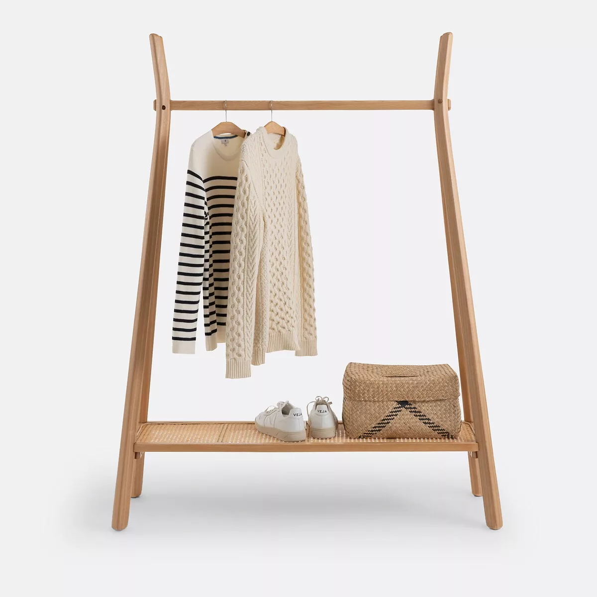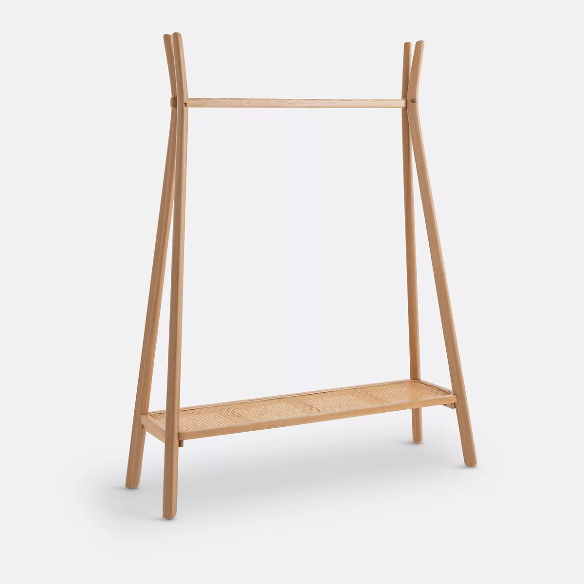 • Structure et barre de penderie en frêne massif finition vernis nitrocellulosique