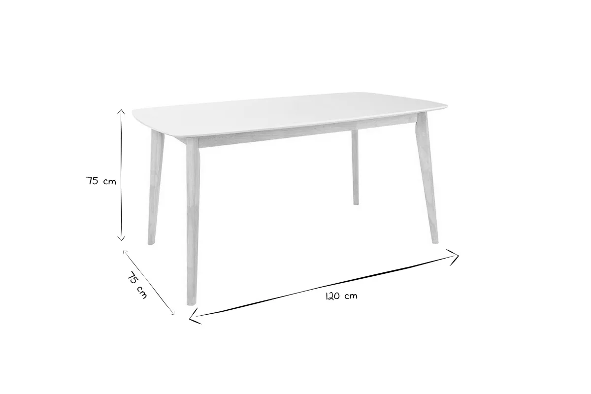 Grâce à ses dimensions (120 x 75 cm), cette table à manger est adaptée aux petits espaces. Elle peut accueillir 4 personnes confortablement et servir à se créer un coin salle à manger dans une pièce à vivre ou un coin repas dans une petite cuisine. Son petit plus ? Un plateau en panneaux de fibres de bois vernis, très facile d’entretien.