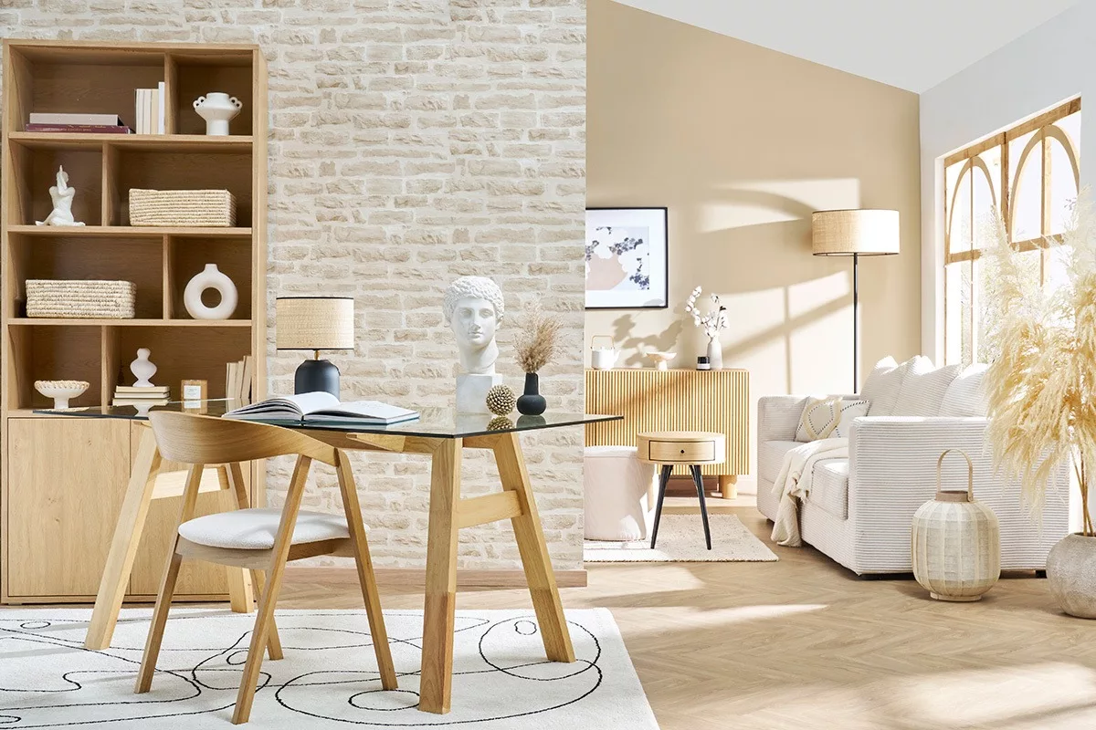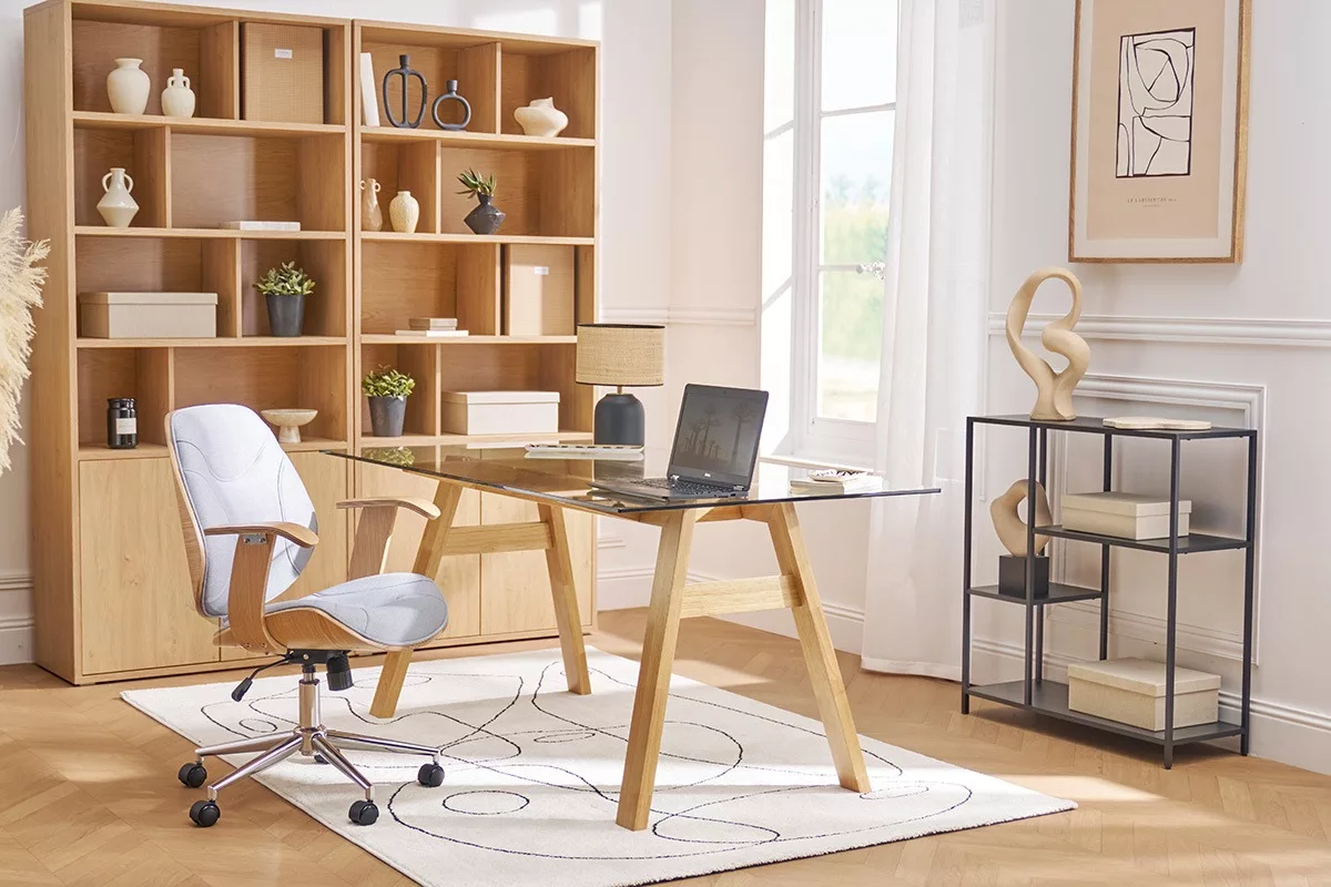 Pouvant aussi être utilisée comme bureau, cette grande table vous offre tout l’espace dont vous avez besoin pour étaler vos dossiers, installer votre ordinateur et poser une imprimante.
