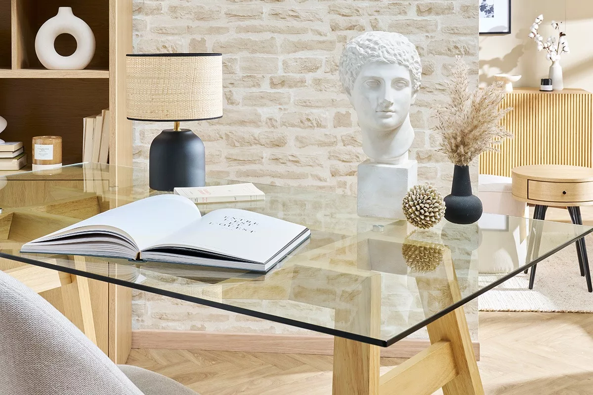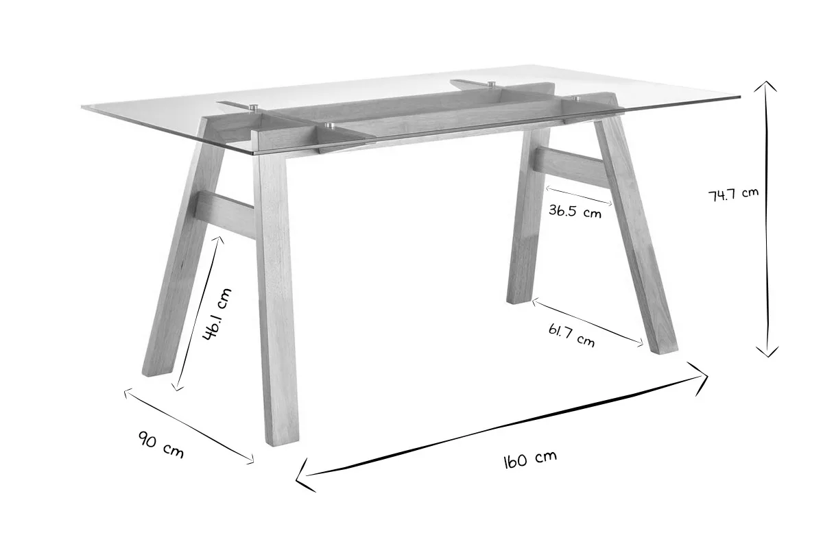 Grâce à son allure contemporaine et épurée, cette table à manger se marie facilement à tous les styles de décoration. Elle comprend, en effet, un élégant plateau en verre qui laisse transparaître un joli piètement en hévéa massif. Oubliez les pièces imposantes et massives qui alourdissent la pièce : grâce à son plateau en verre transparent, cette table est la parfaite combinaison entre force et légèreté visuelle, élégance et sobriété.