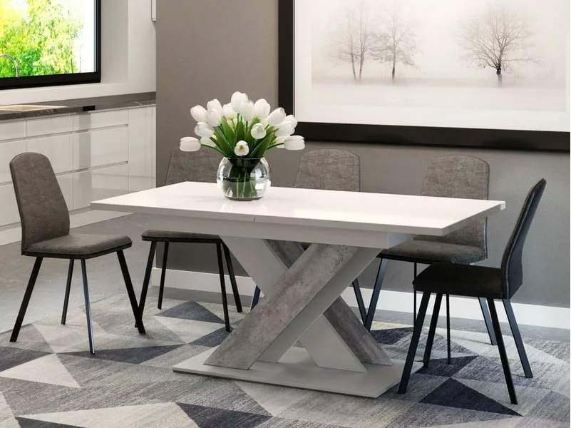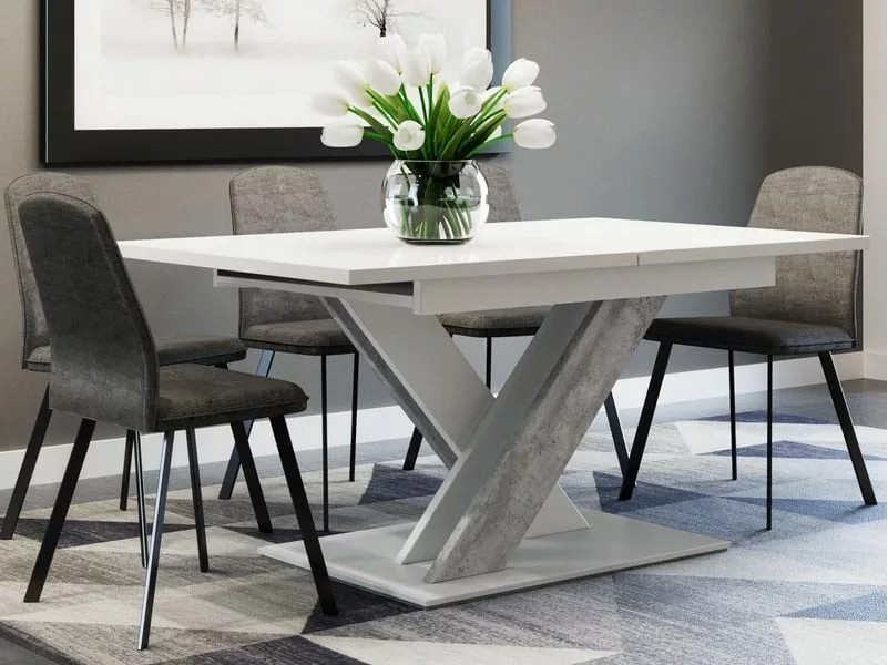 Table a manger extensible bruce – beton et blanc 140 – 180 cm