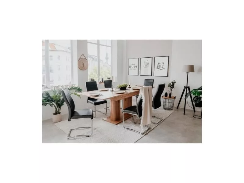 La table Heidelberg est tres pratique grâce a ses deux extensions de 40 centimetres qui permettent d’étendre la table a 180 centimetres ou 220 centimetres de long, au choix. De plus, les deux allonges peuvent se stocker a l’intérieur de la table. Ses deux pieds robustes lui offrent une stabilité certaine, toute la quincaillerie est en métal et son coloris chene artisan est tres tendance.