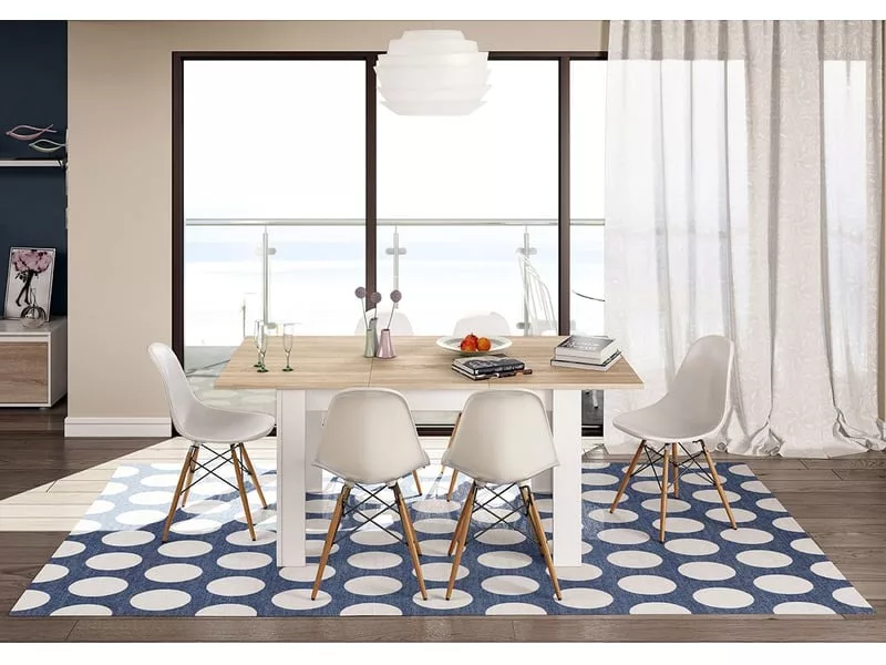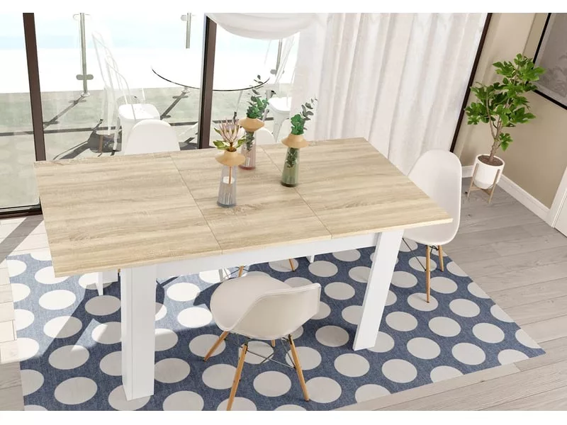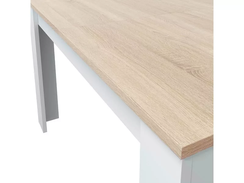 Table extensible salle à manger en chêne canadian et Blanc Artik. cette table repas de forme rectangulaire fera sensation au cœur de votre salle à manger et vous assure des repas pleins de convivialité. Dimensions : 78 x 140-190 x 90 cm. Couleur : chêne canadian et Blanc Artik . Poids : 40.13 kg
