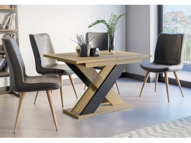 TABLE MANGER EXTENSIBLE LAOS – IMITATION BOIS SCIÉ et NOIR MAT 120-160 CM