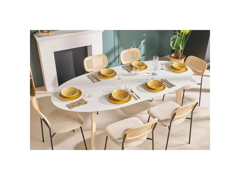 Sa forme allongée permet cependant daccueillir davantage de personnes quune table ronde de dimensions équivalentes. La table ovale est ainsi particulièrement adaptée aux salles à manger rectangulaires ou aux familles qui reçoivent régulièrement, tout en conservant une sensation despace et déquilibre.