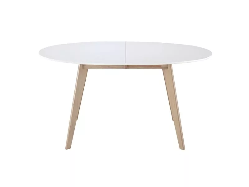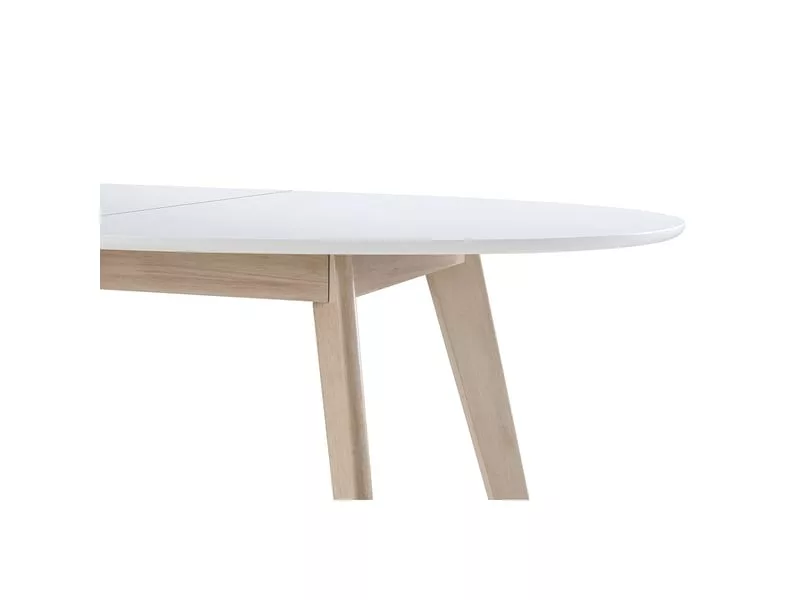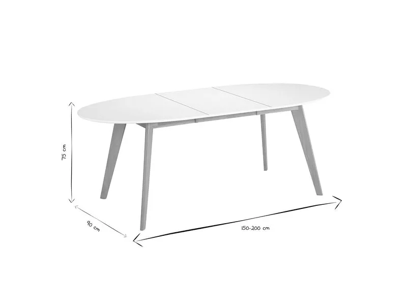 Table à manger extensible ovale blanche et bois clair l150-200 cm leena