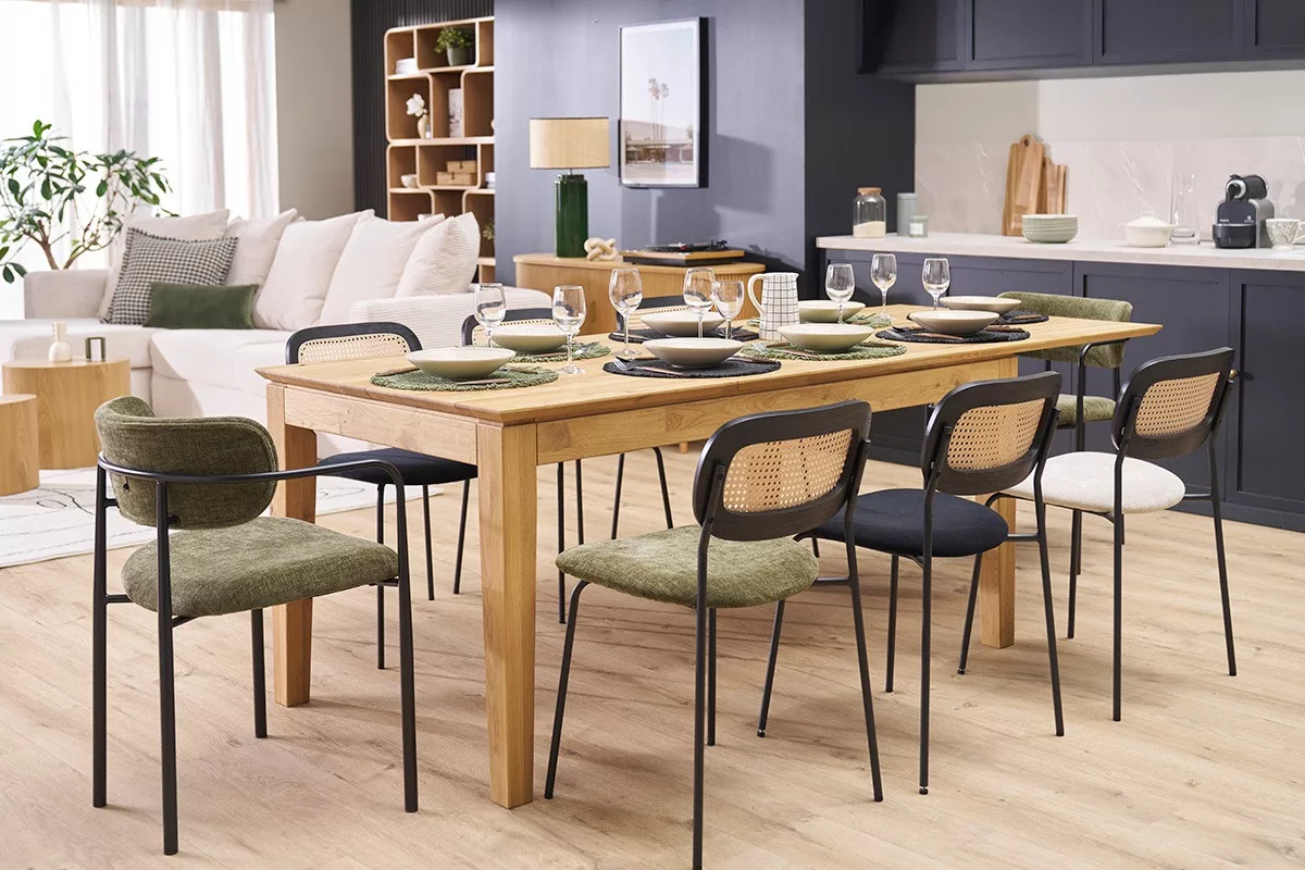 Avec ses dimensions généreuses, la table à manger extensible YULIA s’adapte parfaitement à tous vos besoins, accueillant confortablement jusqu’à 8 personnes, famille comme amis, pour des dîners conviviaux ou des après-midis créatifs.
