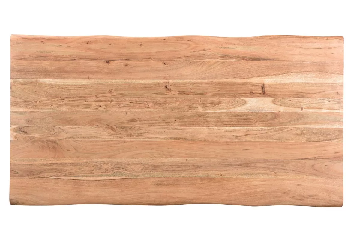 Avec la table à manger KORA, retrouvez la beauté de l’acacia massif associée à la modernité d’un piètement métallique épais.