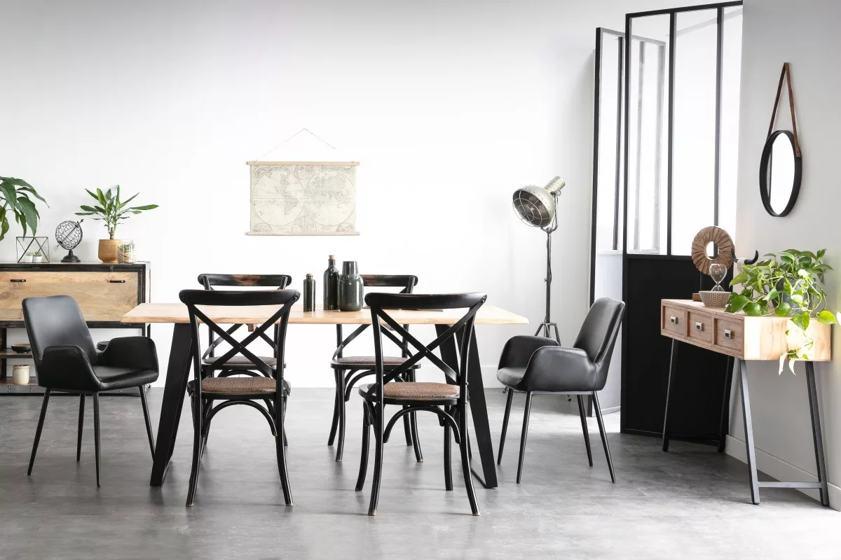 Table à manger en bois massif et métal noir L175 cm KORA livrée à monter.