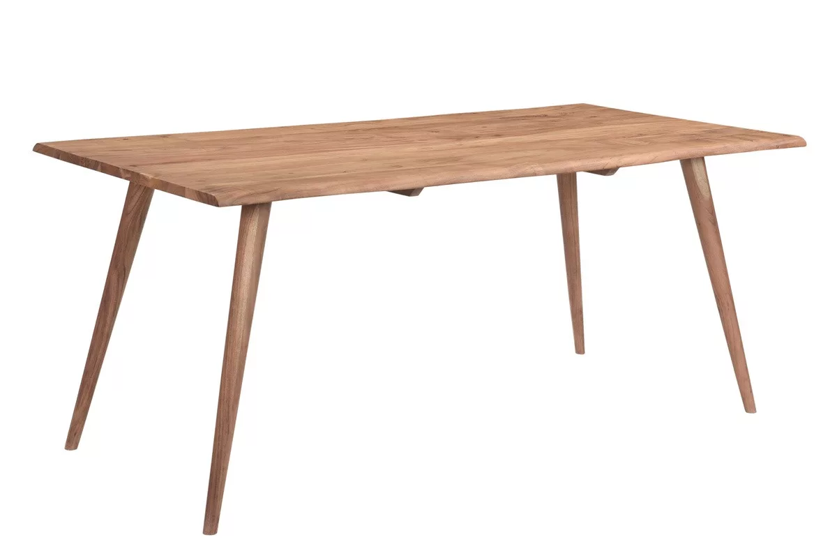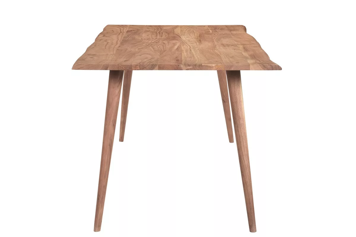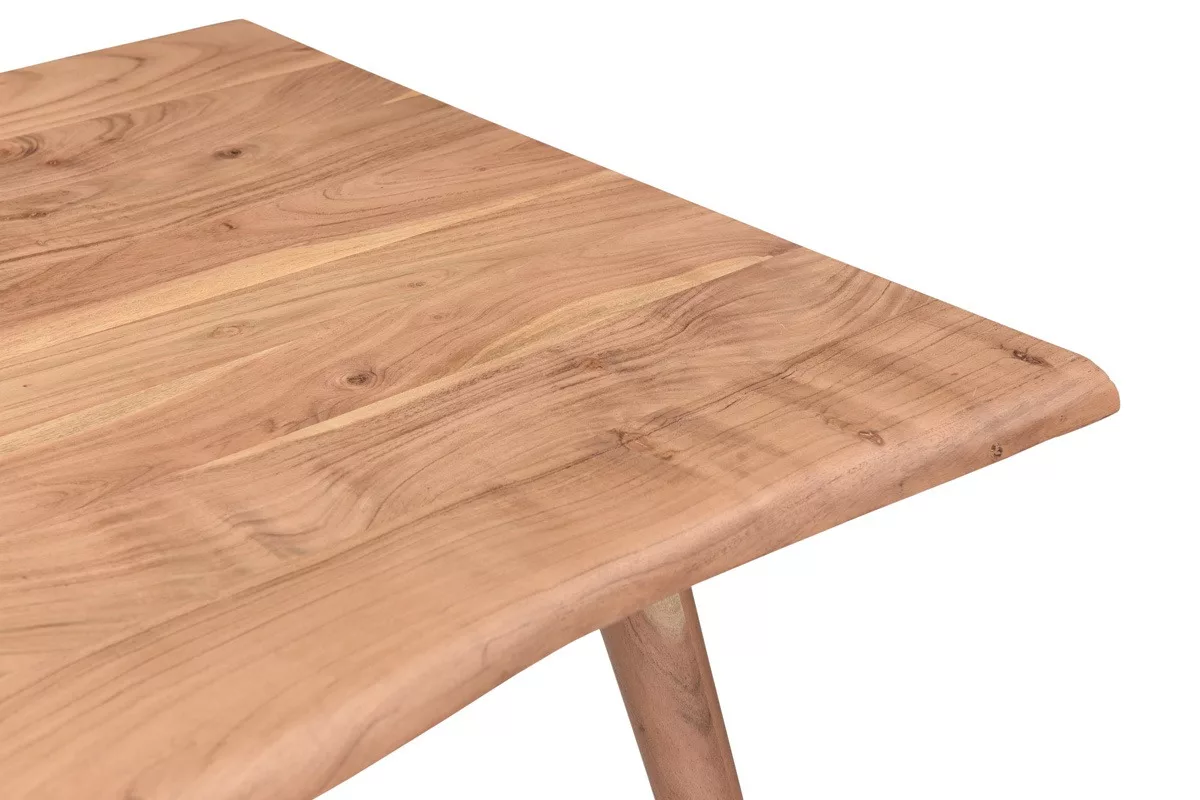 Avec la table à manger SAVANA, les matières et le charme de l’artisanat passent à table. SAVANA est une table conçue intégralement en acacia – une essence de bois clair, dont le grain et les noeuds se teintent de belles nuances rougeoyantes au fil du temps et des expositions à la lumière du jour – Fabriquée selon des techniques artisanales, elle possède tout le charme des meubles faits main et chaque modèle est unique. Cette table à manger en bois 6-8 places associe un plateau en bois massif aux bords irréguliers à un magnifique piètement compas résolument vintage. C’est une pièce de caractère pour un espace repas convivial et chaleureux.