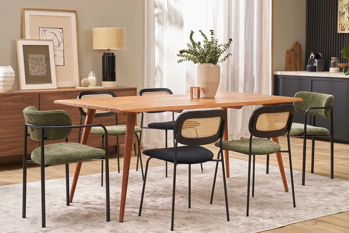 Voilà une grande table rectangulaire dont le look intemporel est fait pour durer ! Affirmez votre propre style en y ajoutant des chaises dépareillées.