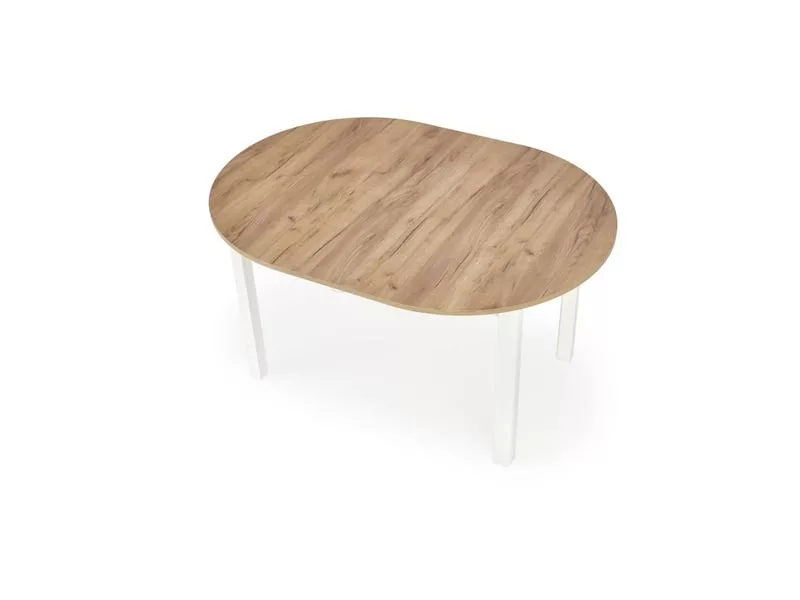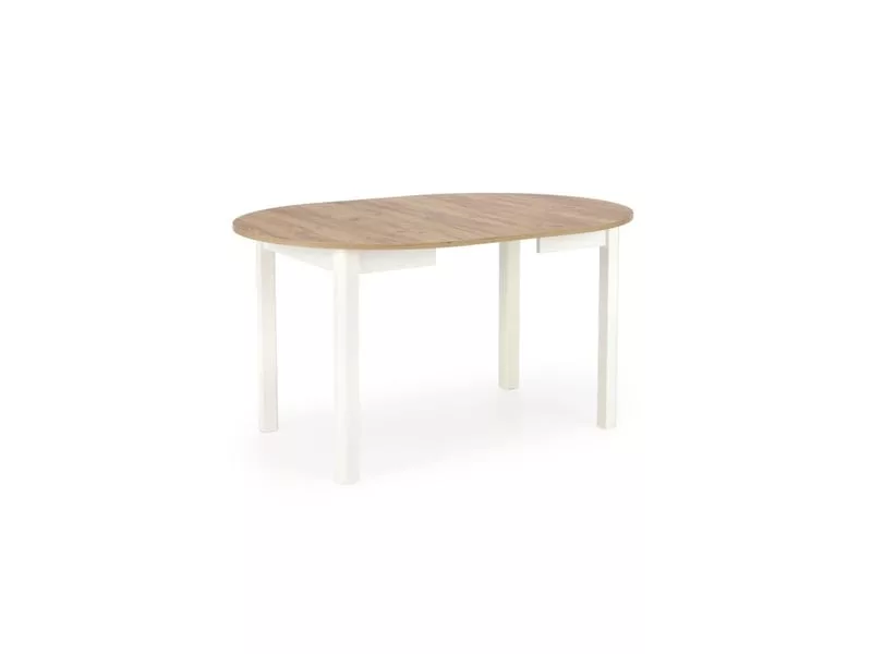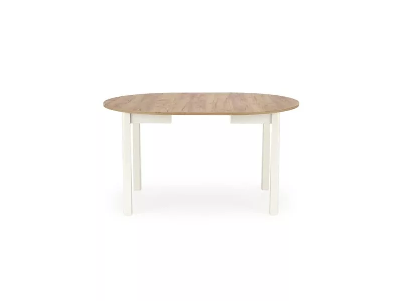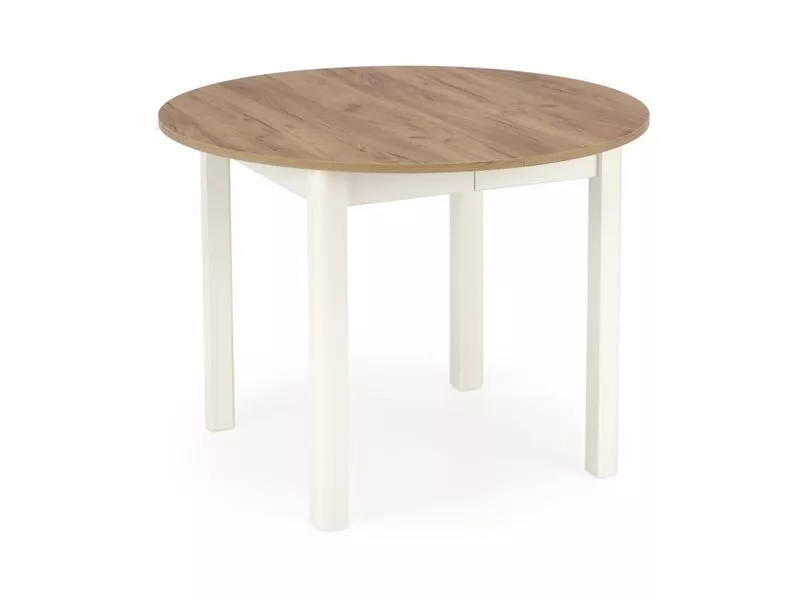 Table à manger ronde 100cm extensible avec plateau aspect chêne et pieds blancs carene